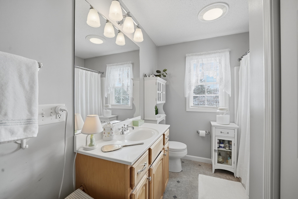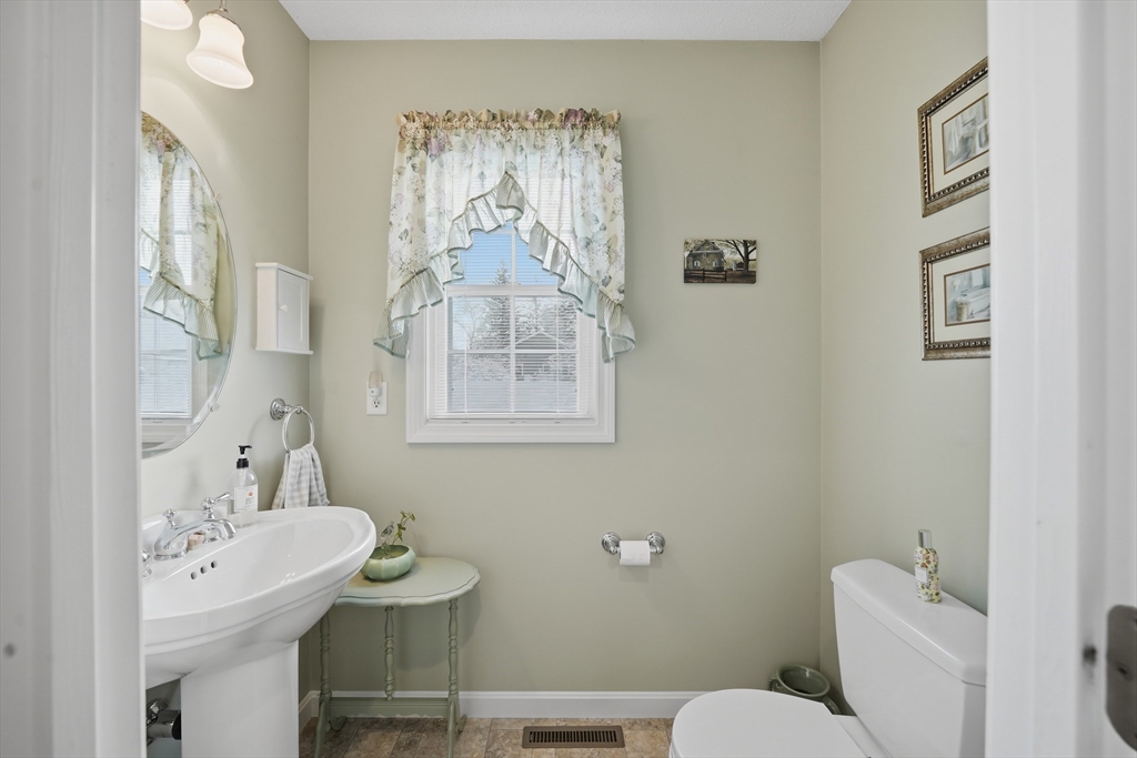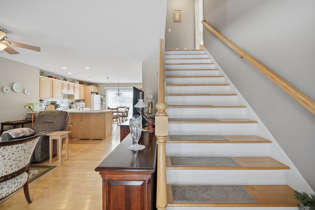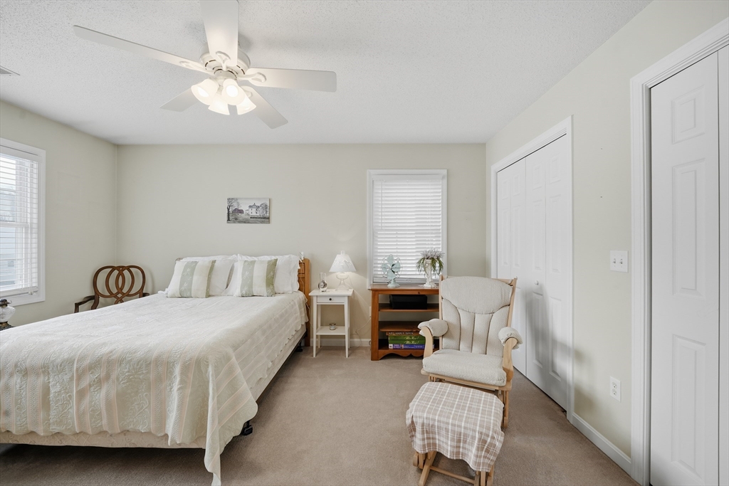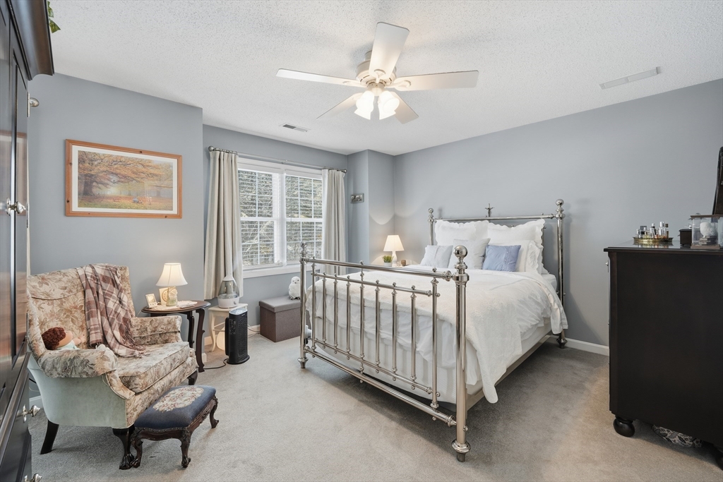 Welcome to Olde Plains Hollow in South Hadley. This very unique and private complex of 10 units features duplex-style townhouse condominiums with attached one-car garages, full basements and private back patios. This pristine one-owner unit boasts a rare 3-bedroom design. With over 1400 sqft of living area, each room throughout is overly spacious and contains generous closets and storage. The main level features an open-concept between the living and kitchen areas and floods with natural light coming through oversized windows and a nicely defined maple cabinetry kitchen layout. Additional amenities include LR maple hardwood flooring, kitchen recessed lighting, pantry closet, and 2nd floor laundry. Extra wide stairway to the 2nd floor could easily accomodate handicap modications. Recent updates include a newer central air unit (approx 5 yrs) and new leased HW heater. Pride of ownership is evident throughout this meticulous home - don't miss out, book your private showing today!