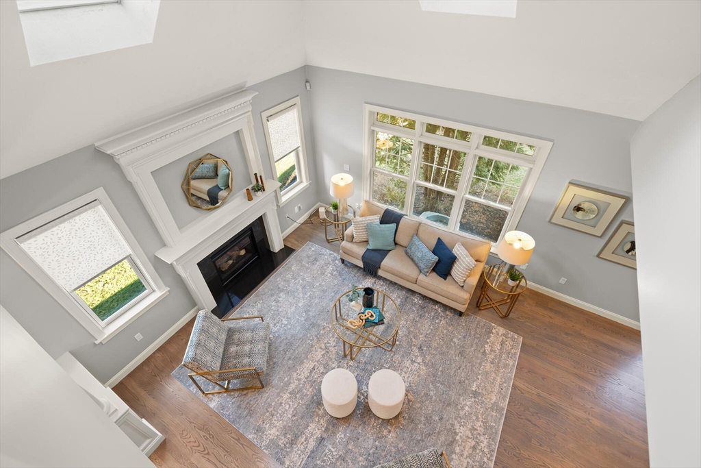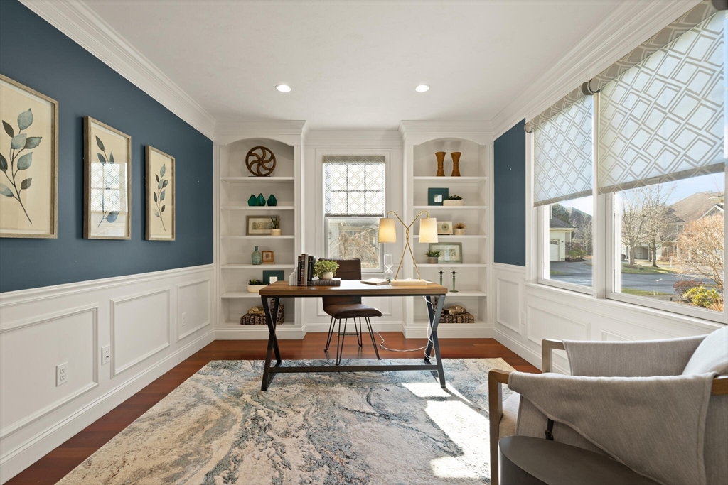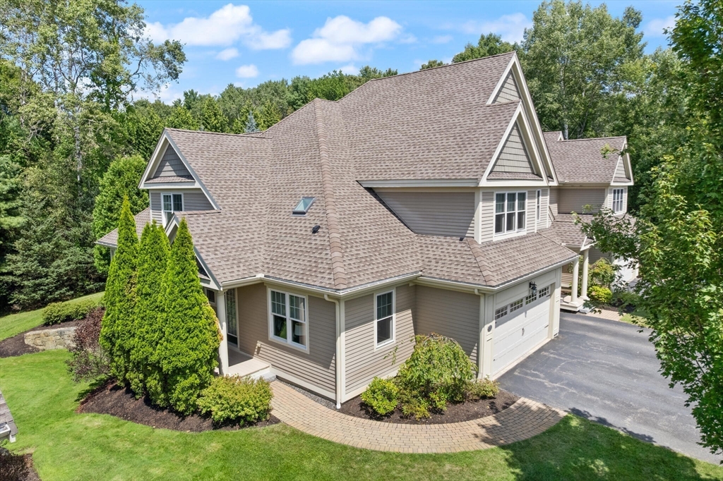 THIS IS A NON AGE RESTRICTED CONDO! SEE MLS#73470150. Sophisticated, airy & bright end unit condo blending elegance & comfort. Perfectly positioned at the rear of the complex, this stunning 3 bedroom home enjoys tranquil views of conservation land. A soaring vaulted ceiling w/ skylight, gas fireplace, gleaming hardwoods, & refined moldings set the tone for quality throughout. The expansive kitchen features cherry cabinetry, stainless steel appliances, a peninsula, & an inviting eat-in area with sliders to the deck. The formal dining room shines with wainscoting & a custom bar w/ glass-front cherry cabinetry, ideal for entertaining. A 1st floor office w/ tailored built ins provides an inspiring workspace. Upstairs includes 3 spacious bedrooms, including a luxurious primary suite, plus convenient second floor laundry. The finished walk out lower level with full bath expands the living space, perfect for a media room, guest suite, or gym. Two car garage and prime Sudbury location!