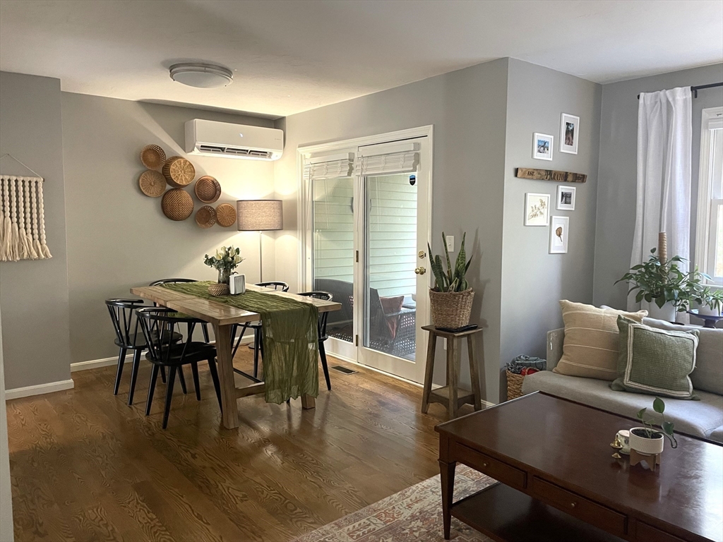 One of the nicest townhomes in desirable Heritage Estates. Remodeled top to bottom 6 years ago, including new cabinets, stainless steel appliances, granite countertops, refinished hardwood floors, bathrooms remodeled. Other features include 2 pantry closets, dining room with French doors leading to a private covered deck that overlooks a wooded back yard, large living room with hardwood flooring, 1/2 bath and central vac, upstairs you will find 2 spacious bedrooms - each with two closets - and a full bathroom. The main bedroom is hardwood and the 2nd bedroom is carpeted and one wall is painted with chalk paint for your creative ideas! The basement is partially finished with laundry hookups and access to the 1 car garage and plenty of storage! Central heat and less than a year old Bosch heat pump and mini-splits! Very private area of the complex with lovely grounds, community garden, viewing pond with a winding path, gazebo and a footbridge. Close to all amenities, schools and shopping.