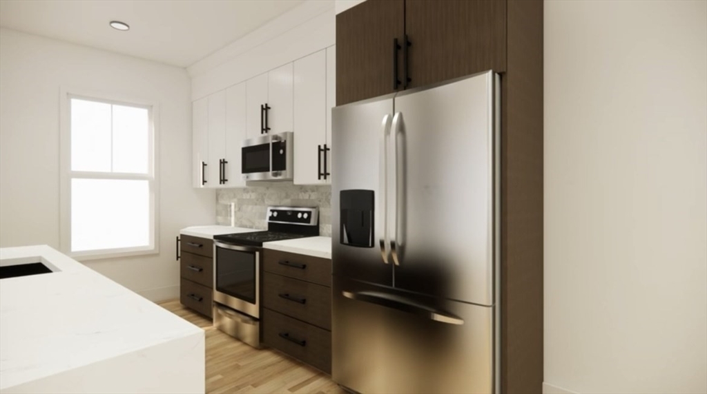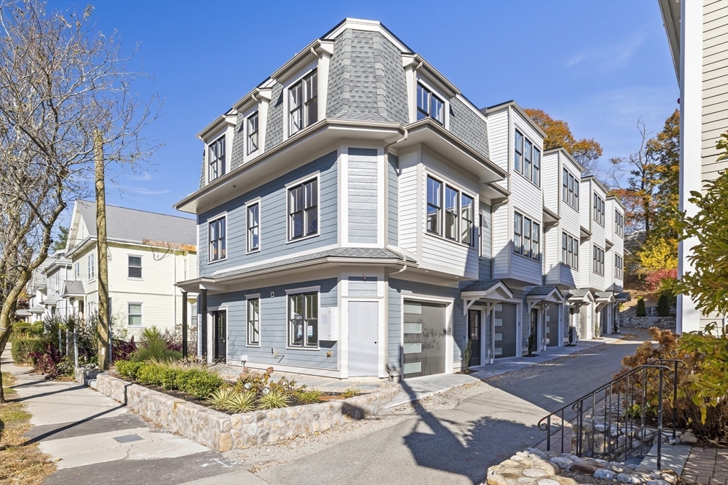 Introducing the first offering in a newly constructed, nearly complete luxury townhome development, designed with elevated finishes and refined living in mind. This sophisticated residence features four bedrooms and four full bathrooms, including a first-floor suite ideal for a private office or elegant guest retreat.A sun-filled open floor plan is anchored by a corner fireplace and flows seamlessly into a designer kitchen appointed with quartz countertops, an oversized center island, custom cabinetry, and stainless steel appliances—crafted for both everyday comfort and upscale entertaining. Central air, a private balcony, and thoughtfully designed flexible spaces enhance the home’s effortless livability. EV-ready garage parking adds modern convenience. Ideally located on the Newton line with direct access to downtown Boston via express bus or the Mass Pike, this residence offers a rare blend of luxury, comfort, and commuter ease.
