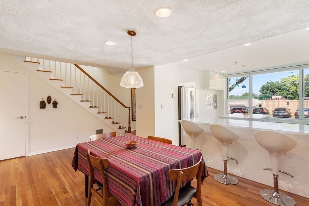 Jamaicaway Tower & Townhouses has everything for gracious living! 24 hour concierge + security w/resort style amenities! Rarely available, 3 BR/2.5 BA renovated TH w/direct entrance, private deck, & 1 parking space-rented. Chef's kitchen w/large windows, stainless appliances, wine cooler, quartz countertops/backsplash/island, plenty of cabinet/drawer space, under-cabinet lighting & trash/recycle drawer. Seating for three guests at the breakfast bar. Dining room open to the kitchen has shelving and drawers with quartz tops overlooking the sunken living room w/floor to ceiling custom cabinetry/storage/TV mount. Half bath & sliders to private deck with Trex decking completes the first floor. Second floor has primary bedroom w/skylight, heated floors in 3/4 bath. 2nd BR w/dbl closet, 3rd BR can be a nice home office. Main bath has W/D, skylight, whirlpool tub, & double vanity. Ample closets. Pet-friendly to 35 pounds. Storage/bike storage available. Pool/Tennis/Gym. Close to Jamaica Pond.
