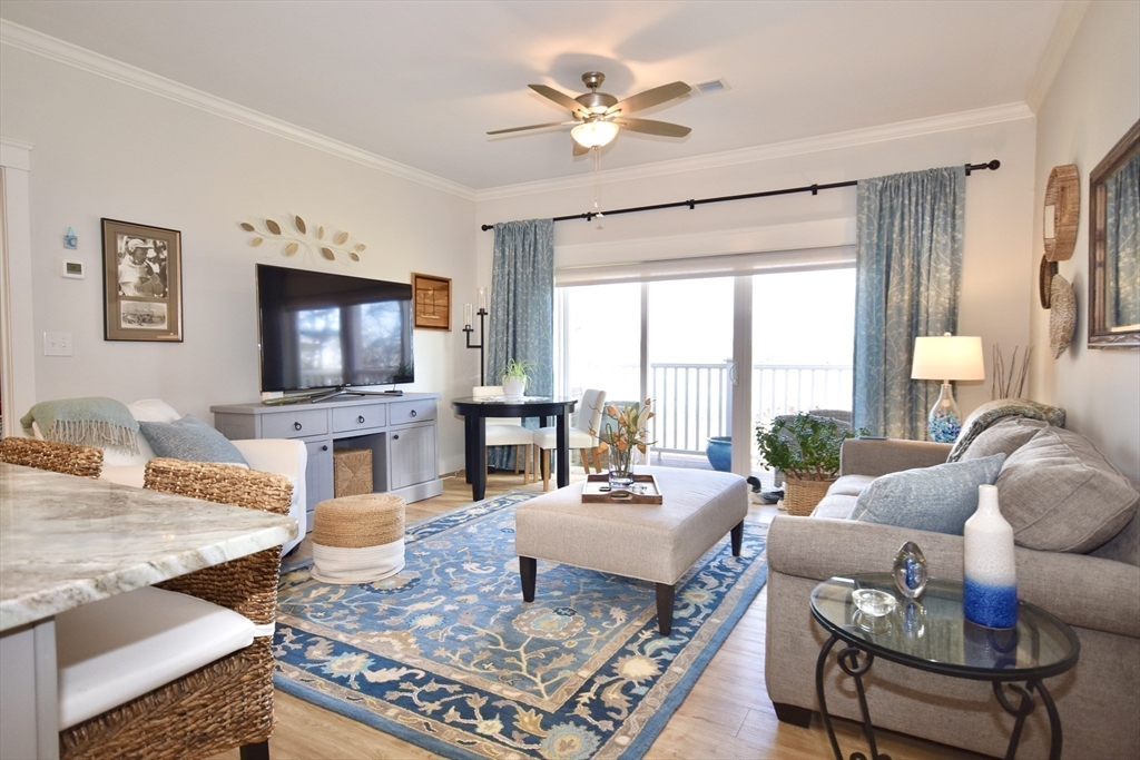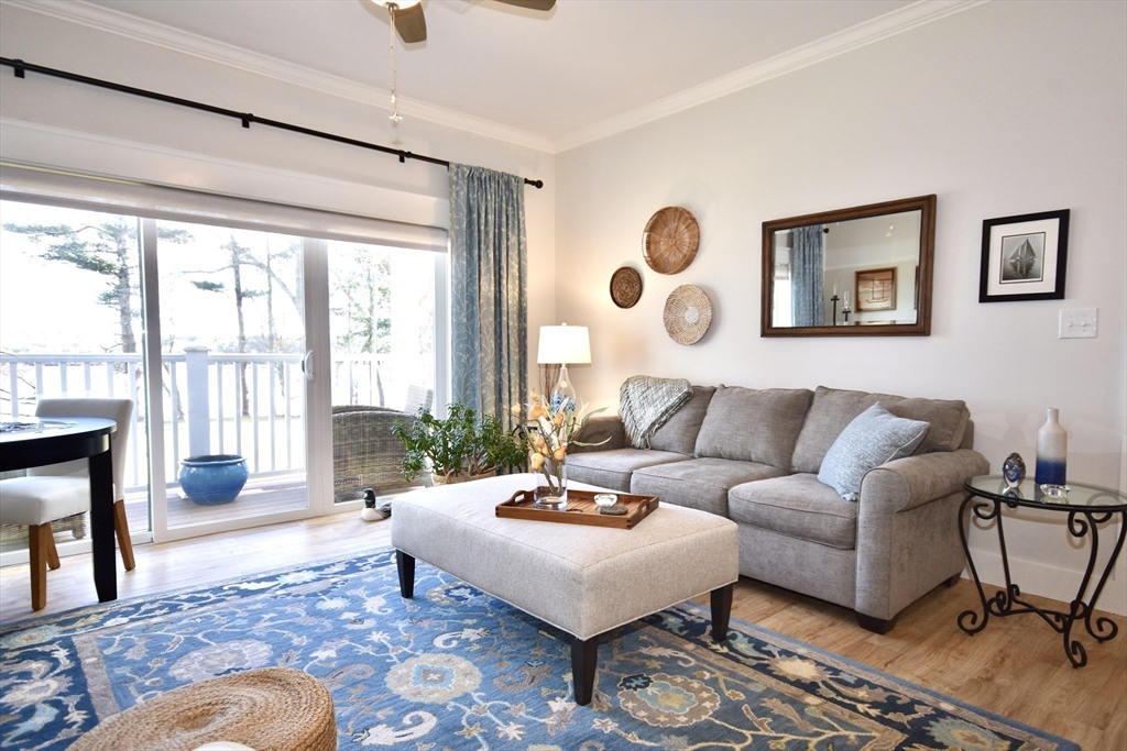 LAKE POINT VILLAGE~ Beautiful Panoramic WATERVIEWS from kitchen, living and both bedrooms in this first floor unit. This unique over 55 community is like nothing else. Granite kitchen with oversized island are part of the open concept living/dining space. Oversized walk in closets and 2 beautiful full baths. Extra room for an at home office, den or spot for a guest. All appliances included and this includes in unit laundry. Elevator to garage below with deeded space and extra storage. Fitness center and Community room for relaxing or gathering. The surrounding grounds are beautiful with walking trails and conservation areas. All around views of Ponds and Cranberry bogs.... This really needs to be seen as it is a very special complex. Small pets allowed with review by association. Ease of living awaits you.