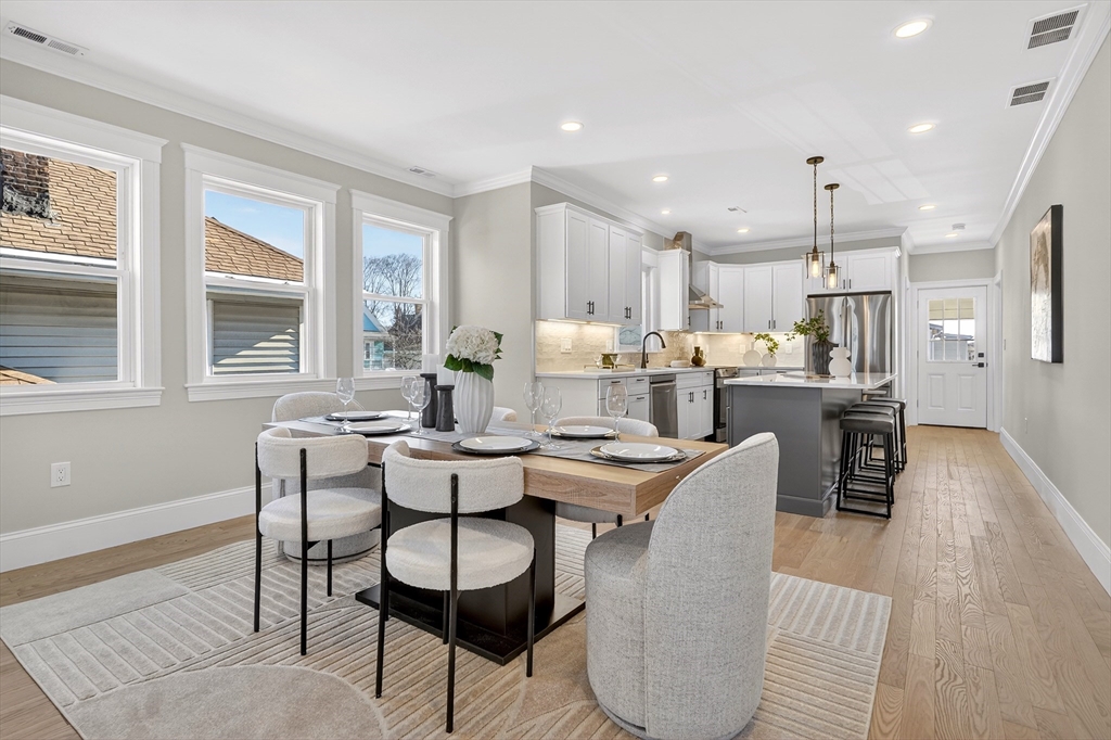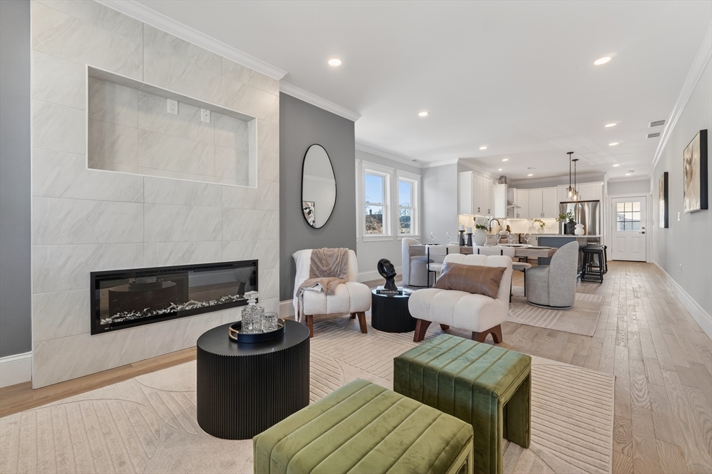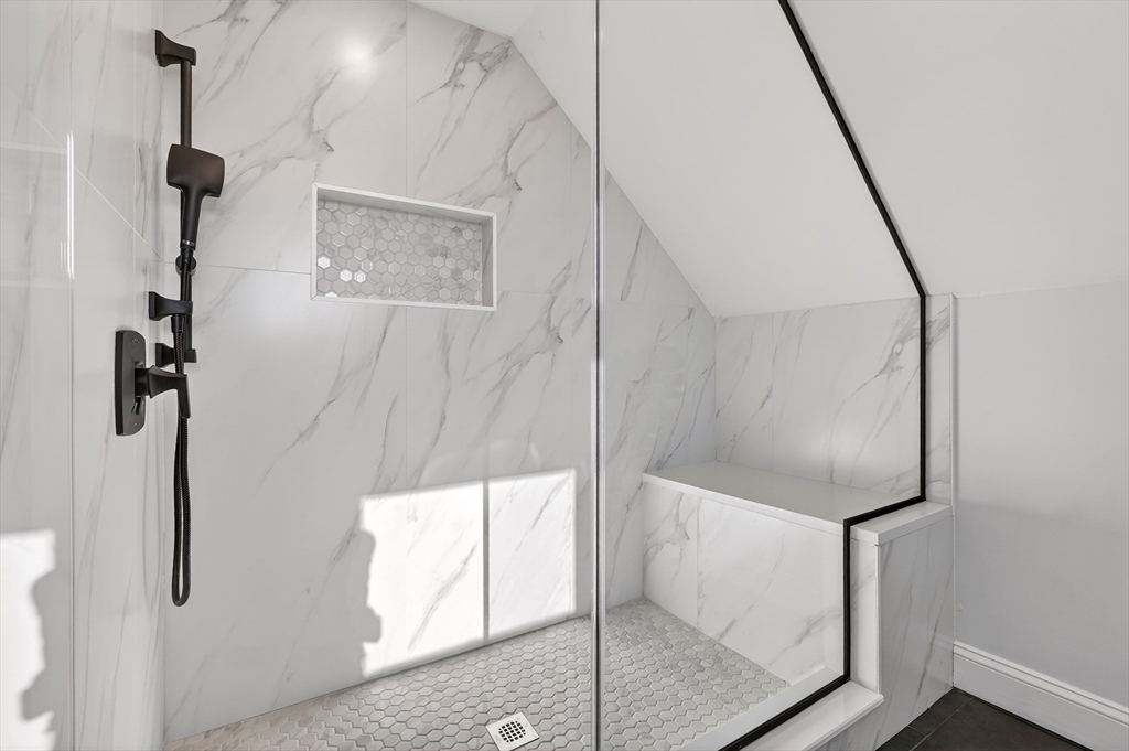 Welcome to 115 Emerald St. This beautifully designed gut renovated 4 bed 4 bath unit is a must see! As you walk into the unit the grandeur of the property just takes your breath away. The main level open concept living space just pops with elegance. The quality of workmanship & materials are noticed from the get-go. From the sleek fireplace to the spacious kitchen island this property just speaks for itself! The main level also has two bedrooms, a master bedroom with an ensuite bath and an additional bedroom as well as a full bath. The upper level is a spa like oasis with two gorgeous master bedrooms each with an ensuite bath as well as an abundance of closet space for each person to store their belongings. Exclusive porches front/back, additional storage room on the side of the house and private parking are just some of the additional features. Close to Boston and all major highways this property is centrally located making it a commuter's dream! Start your new journey today!