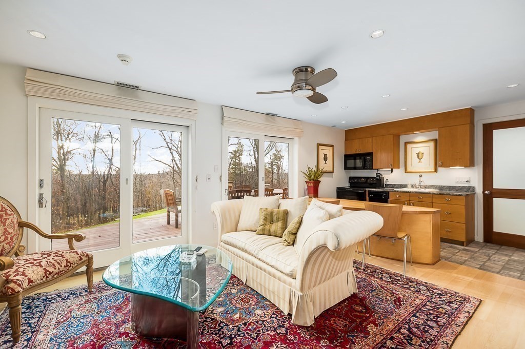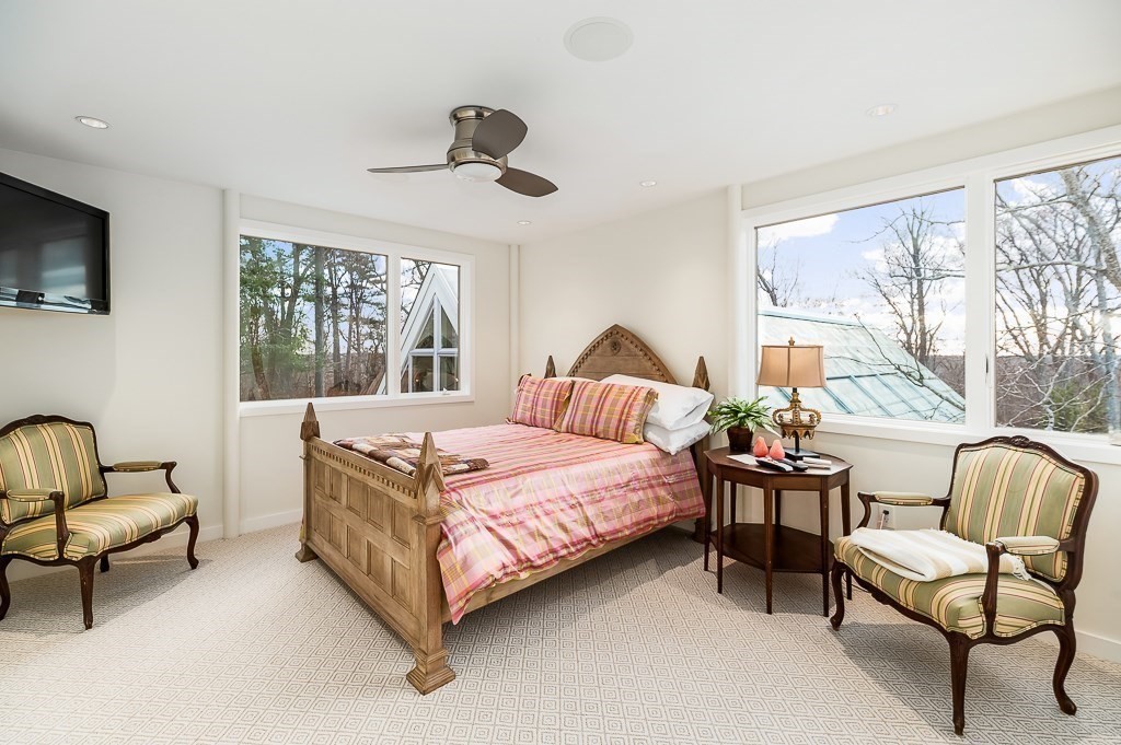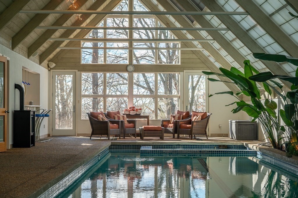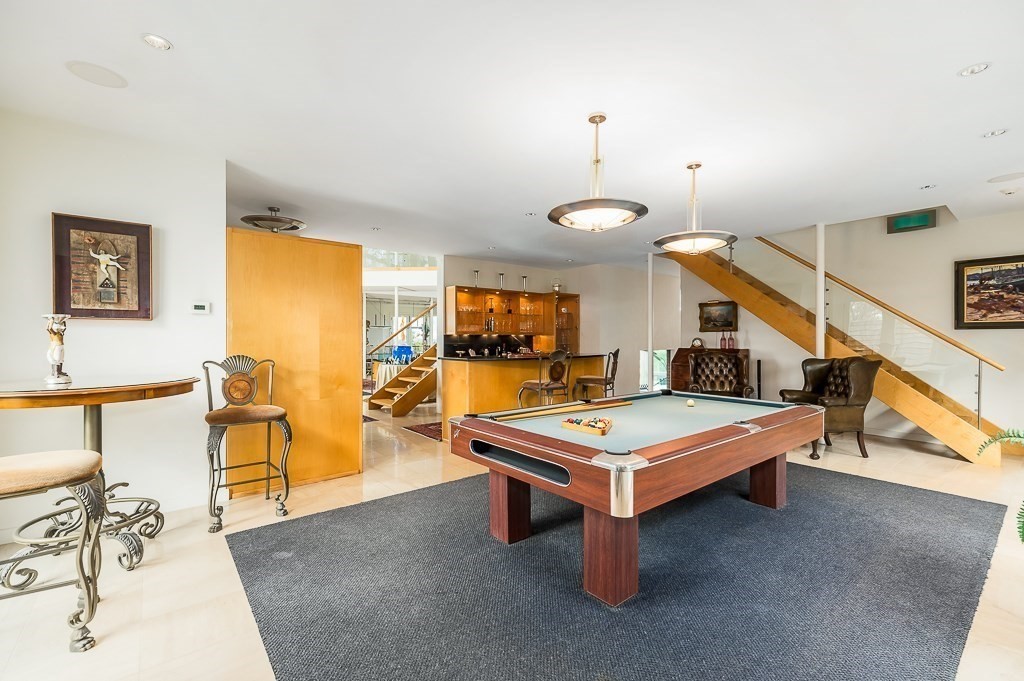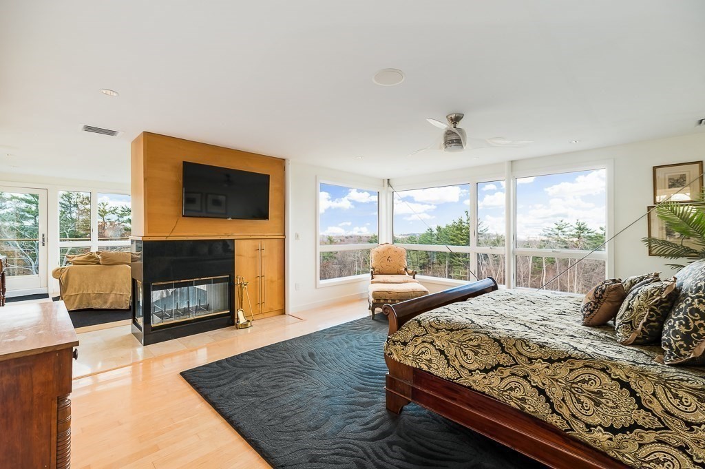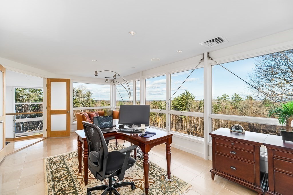 This striking modern estate rises above 15+ acres of complete privacy, with sweeping overland views and distant ocean vistas. Designed for both drama and livability, the move-in-ready contemporary centers around a breathtaking great room with 25-foot ceilings, walls of glass, and an elevated bridge overlooking the space. The home flows effortlessly into a sleek chef’s kitchen, sophisticated media and billiard rooms, and multiple guest suites ideal for hosting. Five bedrooms, seven baths, and a remarkable home office or studio complete the main residence. A spectacular natatorium—with a 50-foot heated pool and spa, bar, and private guest suite, creates a true year-round resort experience. The second-floor primary suite offers a marble spa bath and custom dressing room, while a lower-level library/office and wine cellar cater to collectors and remote work. Expansive decks extend living outdoors, and the approach—via koi pond, waterfalls, and tranquil landscaping, an unforgettable estate.