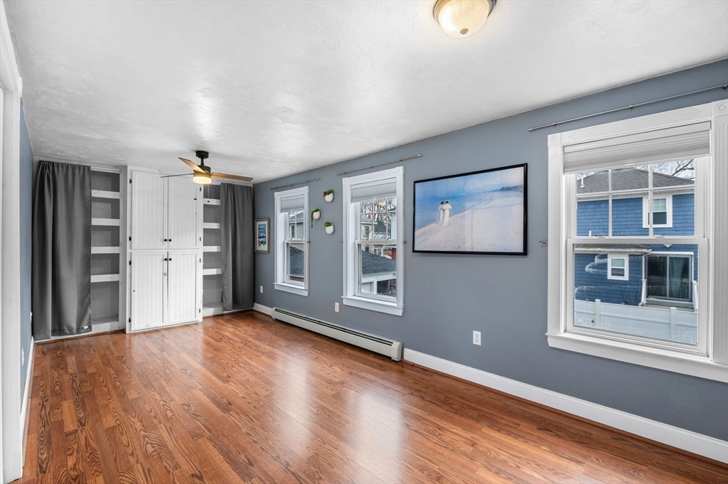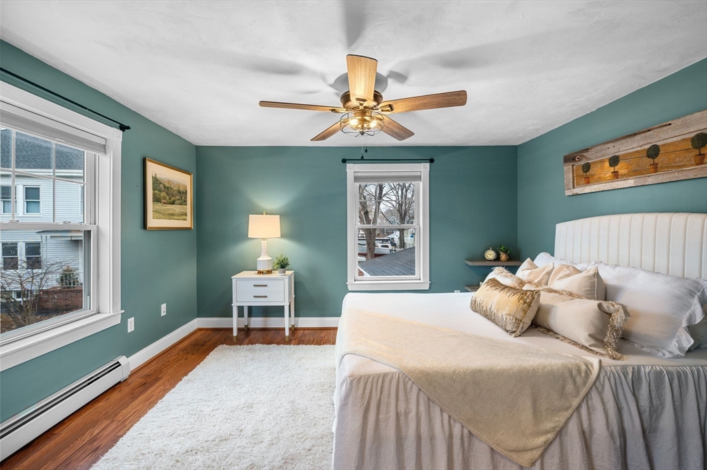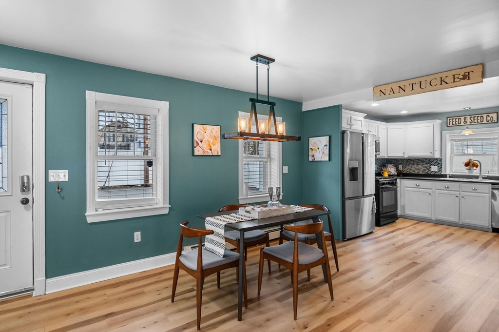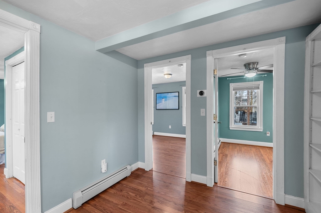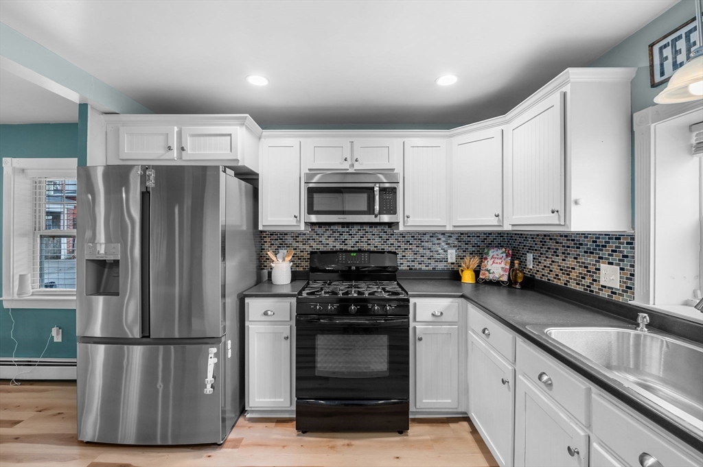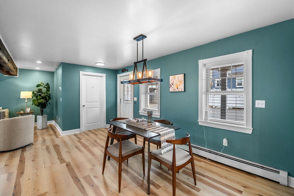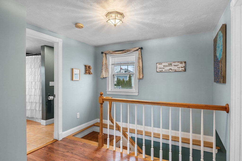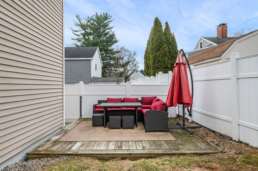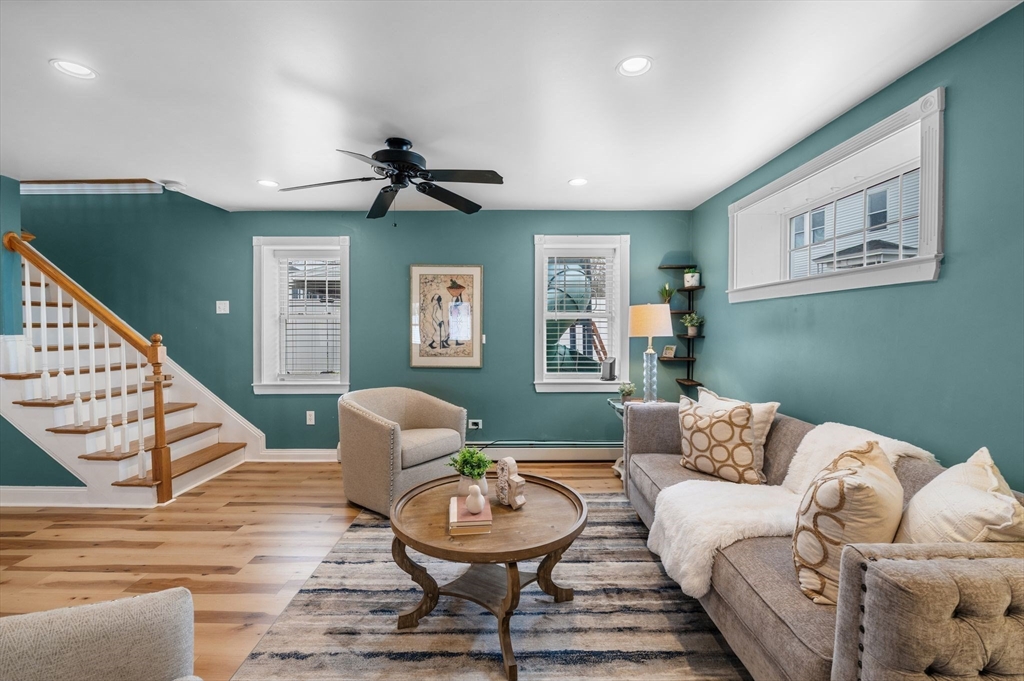Welcome to this charming 3-bedroom, 1.5 bath home offering 1,822 sq ft of comfortable living in the heart of downtown Amesbury, close to everything the city has to offer, yet perfectly tucked away for privacy. The inviting front porch offers a cozy spot for morning coffee. Once inside, the home opens to a bright, open-concept layout, highlighted by a beautiful exposed beam that adds warmth and character. A huge front closet provides exceptional everyday convenience, with plenty of space for coats, boots, and all the extras. This home features nicely sized bedrooms with great flexibility for guest space, home office needs, or everyday living. The full bathroom is thoughtfully designed with a double sink vanity. Step outside to enjoy an adorable fenced yard, with a deck, and a spot for a dog run. A shed incorporated into the house adds standout storage space for bikes, tools, seasonal items, and more.With its blend of charm, space, and an unbeatable location, this home is the one!