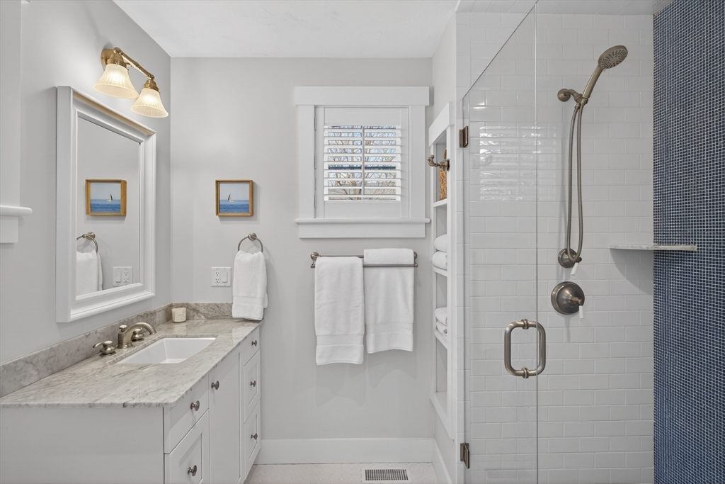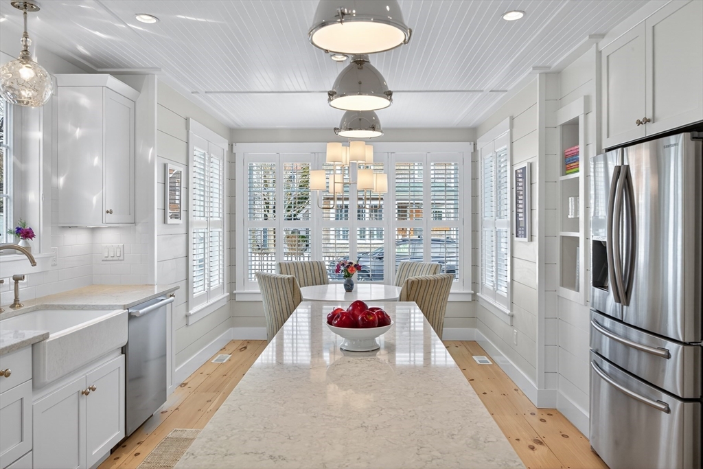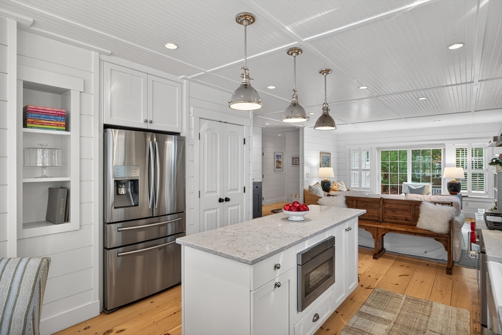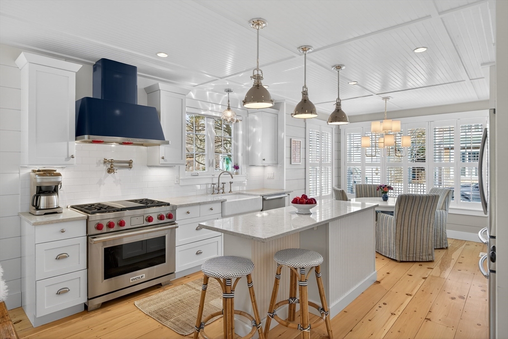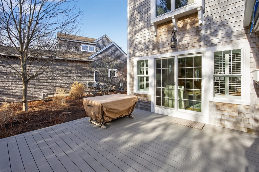 Welcome to 23 Cobblestone! Located in the picturesque, Nantucket-style cottage neighborhood within The Pinehills. Walking distance to miles of paved trails, Pinehills retail, events on the Village Green, and activities at the Stonebridge Club. First floor includes an open plan living room with fireplace, and a chef’s kitchen with Wolf Dual Fuel Range with 4 burners and infrared griddle. Range hood vents outside. Kitchen includes a farm sink, and a center island with built-in microwave. Primary-sized bedrooms located on both first and second floors, with a third bedroom with window seat also on the second floor. Full, step-in tiled showers on both floors. Ample storage and closet space throughout the home, garage, and basement. Custom front storm door. Step off large back deck (with retractable awning) to enjoy your backyard that includes gas hook-up for grilling. Mature plantings throughout property include roses, hydrangeas, and ornamental grasses. Installed two-zone drip irrigation.