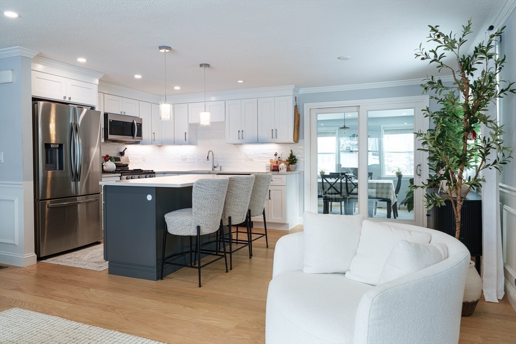 Welcome to 10 Yale Drive, this is the home you've been waiting for. Beautifully renovated in 2023, this inviting home offers modern updates and thoughtful design throughout. The kitchen features white cabinetry, quartz counters, stainless appliances, and a welcoming island for gathering. The kitchen opens seamlessly to a spacious, open concept living area centered around a cozy fireplace. The upper level also includes a sun-filled four-season room, currently used as a dining area, offering flexible year-round living space Down the hall are 3 bedrooms, a full bath and a master ensuite. The lower level features a spacious family room with an electric fireplace, sliding doors leading to the outdoor patio. This level includes a 4th bedroom, Office/storage room, laundry room and utility room. Updates include brand new Shed, privacy fence, French drain, tree removal, step on patio, new lawn and security cameras. Family -friendly area near schools, shopping bike bath and 495. THIS WON'T LAST