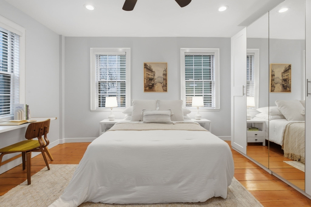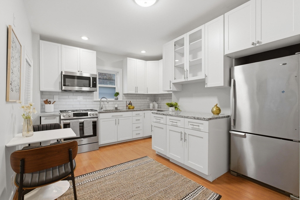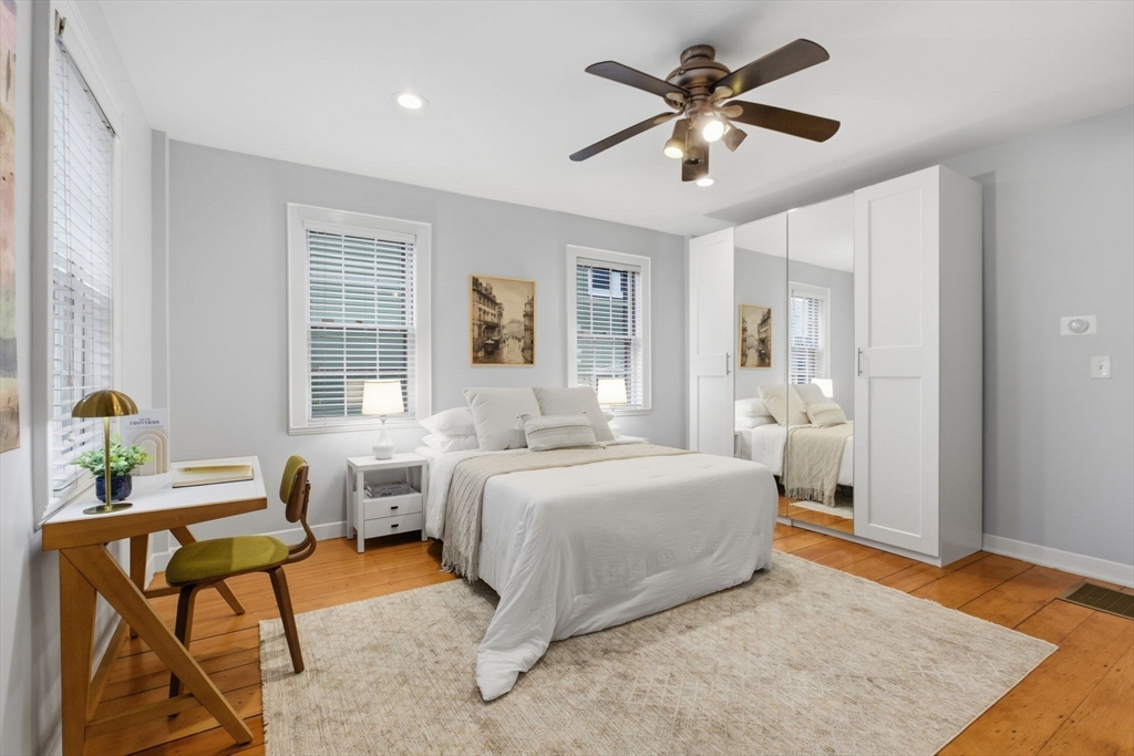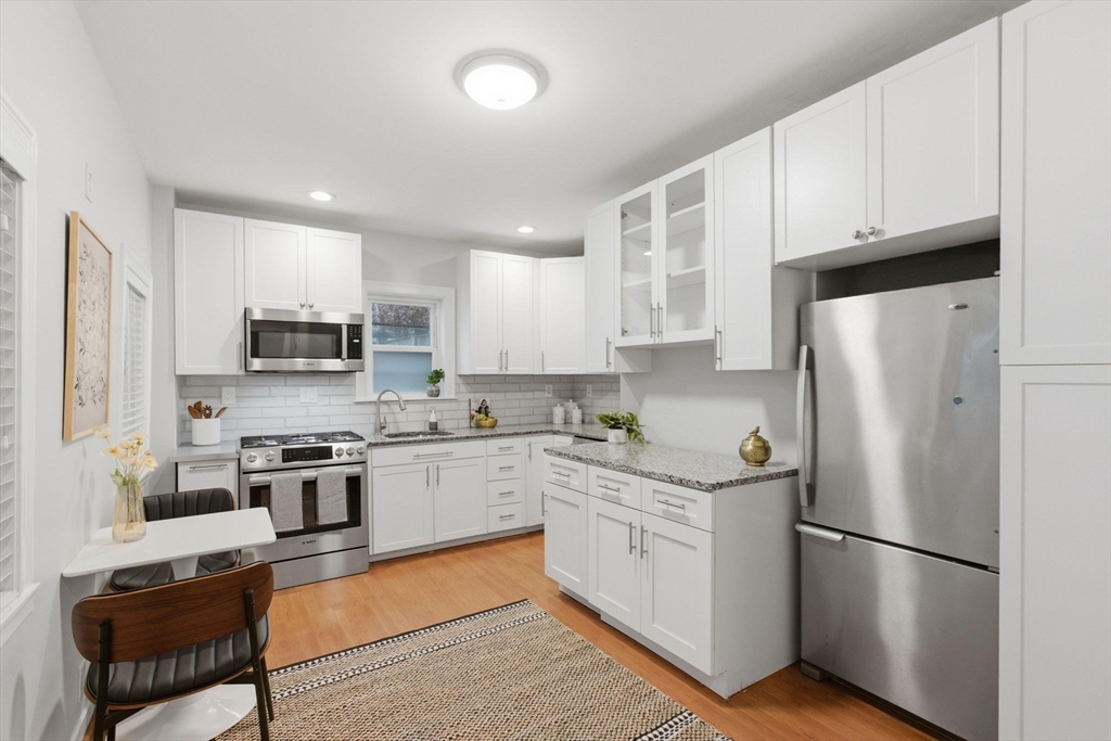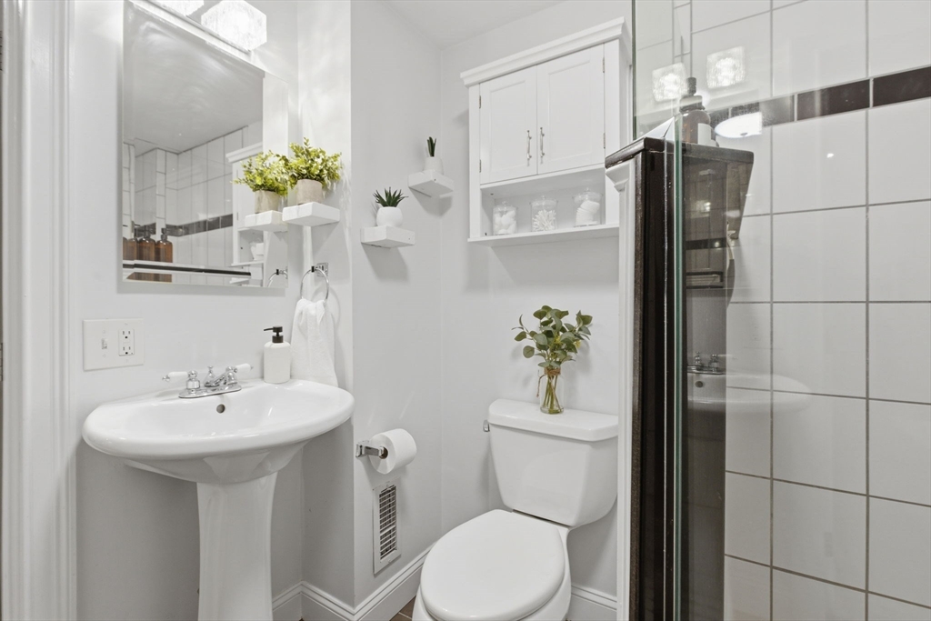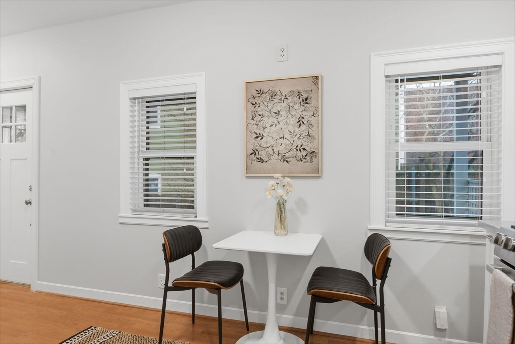 Rarely available one bedroom condo on historic High Street, steps from Monument Square. This spacious one bed one bath home provides 754 square feet of living space including an updated, eat-in kitchen with granite counters, stainless steel Bosche appliances, and subway tile backsplash. The kitchen offers direct access to a private, partially enclosed brick patio and garden area, creating a seamless indoor-outdoor living experience. The generously sized living room features a gas fireplace, perfect to unwind with a book or a glass of wine, and also boasts original wide pine floors, recessed lights, and ample natural light. The bedroom is large enough to have a king size bed and dedicated office area and also features an additional fireplace and ample closet space. The condo also offers its own private entrance, LOW HOA fees at $97/month, additional basement storage, central air, and in-unit Bosche washer/dryer. An exceptional value at $882/sf and an opportunity you won't want to miss!