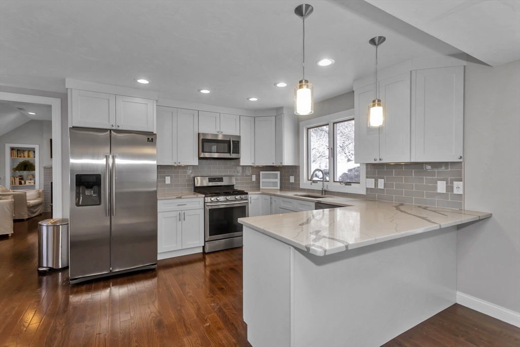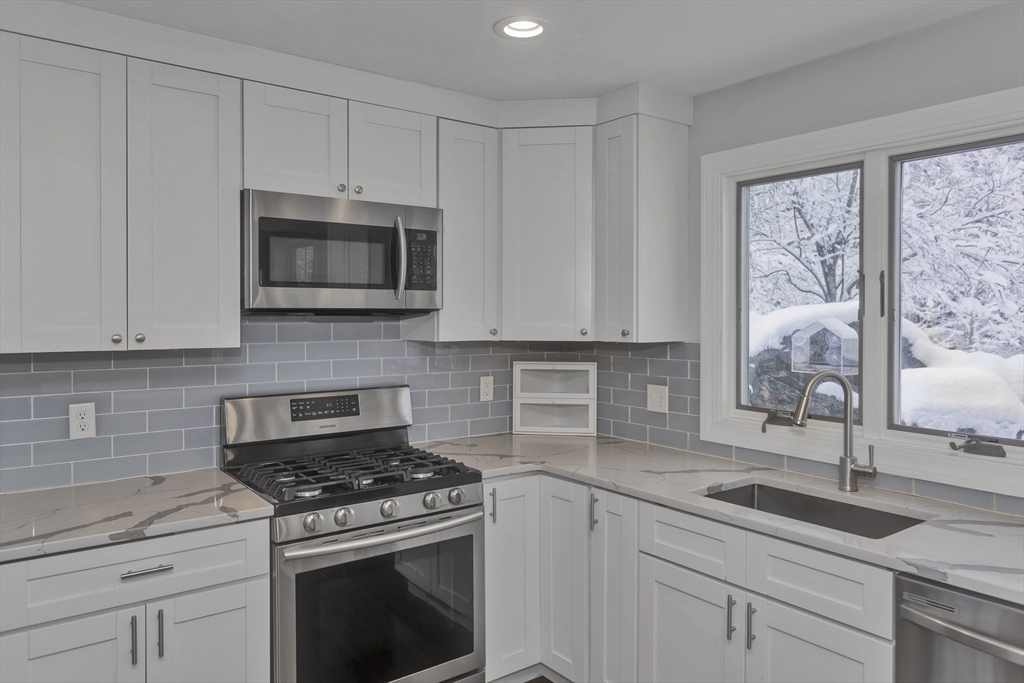 Picturesque home centrally located in Berlin, MA, situated with easy highway access! This home underwent an extensive remodel in 2020, including a new roof, updated electrical, plumbing, and heating system. The open floor plan is ideal for entertaining family and friends. The gorgeous eat-in kitchen offers quartz countertops, stainless steel appliances, ample storage, and a dedicated coffee area. The main living space creates an entertainer’s paradise, highlighted by a beautiful living room with a propane fireplace, built-ins with a wine bar, a formal dining room, and a family room with an office/entry nook. The main floor also includes a bedroom with a full en-suite bath. Upstairs, the spacious primary suite features a walk-in closet and a stunning en-suite bathroom with a walk-in shower. The 2nd level also features an additional 2 bedrooms, a full bath, laundry, and access to the finished 3rd-floor bonus room. This is a MUST-SEE!