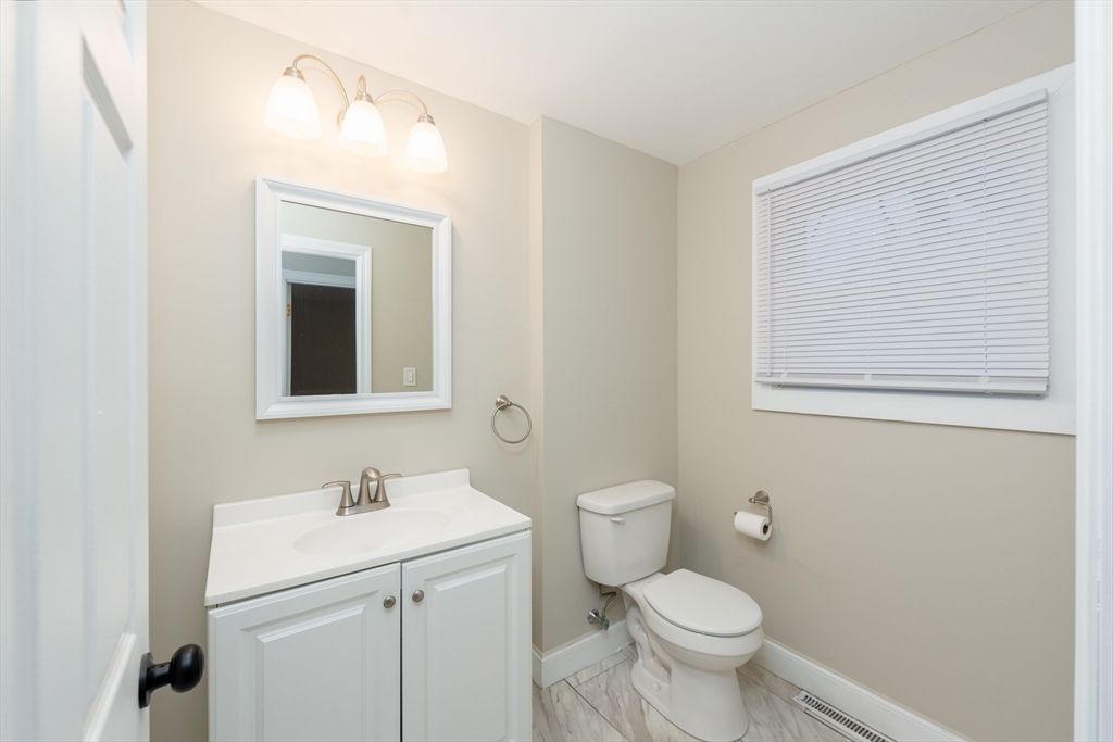 Completely updated sprawling ranch with over 1800 SF of seamless living. Open concept floorplan offers instant appeal with freshly painted neutral colors throughout. Kitchen is well sized with breakfast nook and expansive dining area. Living room is oversized, beautiful natural light adds to the comfortable vibe. Thoughtful space for entertaining. Generous sized bedrooms and closets, all with natural hardwood offering more attractive space. Main bath and half bath are conveniently located and completely updated with large plank tile flooring and on trend vanities. Additional room off kitchen is a comfy home office or bonus space. Lower level is ready for your personal touch with a retro partially finished room and plumbing in place for future bath. Bring your own ideas and creativity! Updates include, heating system, roof, electric panel, refinished and replaced flooring, new interior paint, baths, kitchen tops and appliances. Oversized lot and close to major highways. A true gem!