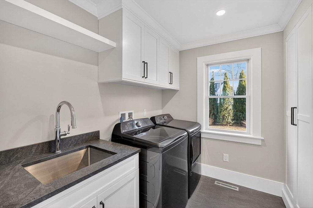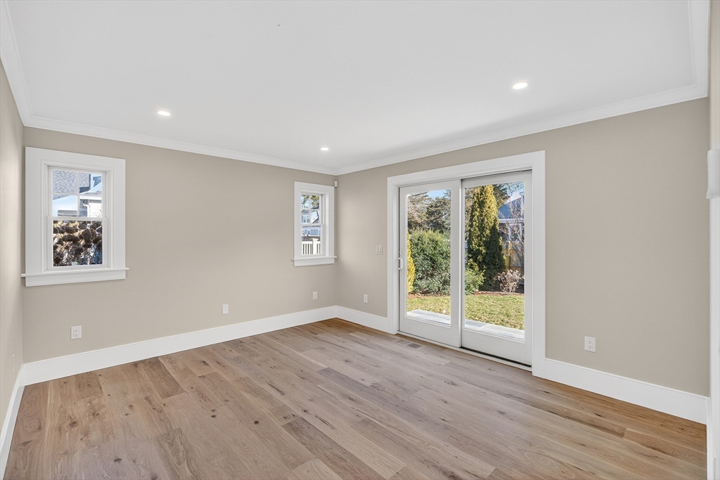 This beautiful new Osterville home is perfectly situated in Wianno, just minutes from village shops, restaurants, and Dowses Beach. With its open floor plan, white oak hardwood floors, and exceptional attention to detail, this charming property offers coastal living at its finest. The stunning kitchen features quartzite countertops, Viking appliances, and a large island with generous seating and ample workspace. A cheerful dining area anchors the space, complemented by a separate bar with glass-front cabinetry—ideal for entertaining and additional storage. A light-filled sitting area, first-floor primary suite, private office, and separate laundry room complete the main level. A graceful open staircase leads to the second floor, where you'll find a spacious family room and two additional bedrooms; a second primary ensuite, and a bunk room with its own full bath. Thoughtful decorator touches and Serena & Lily wallpaper bring warmth and personality to every corner of this home.