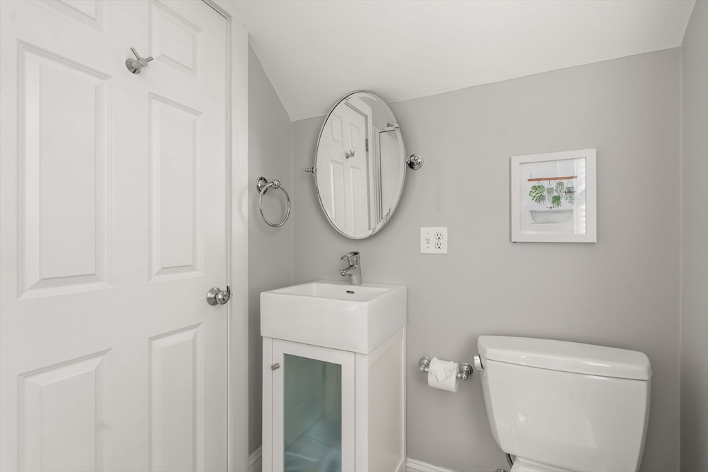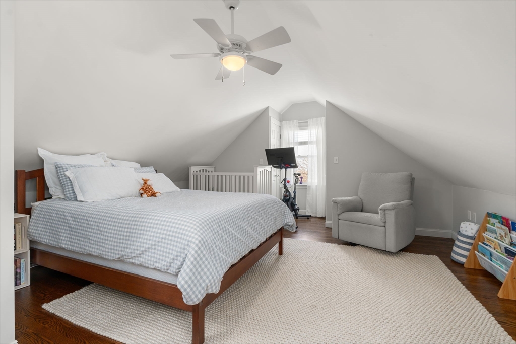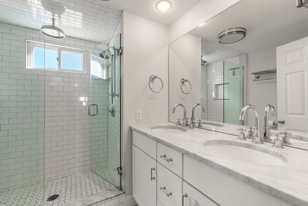 Rarely available 3-bedroom, 3-bath single-family home tucked away on a quiet Charlestown street. The main level offers a sun-filled, open-concept kitchen, living, and dining area with rich walnut hardwood floors, a gas fireplace, and sliders leading to a private deck and fenced yard. The chef’s kitchen features stainless steel appliances, custom cabinetry, marble countertops, an island, and pantry. The primary suite includes a walk-in closet and a renovated bath with a frameless glass shower, rainfall showerhead, and double marble vanity. A second bedroom, full bath, and laundry complete the second level. The top floor offers a spacious third bedroom with full bath—ideal as a guest suite, office, or playroom. Additional highlights include central A/C and a full basement with excellent storage.