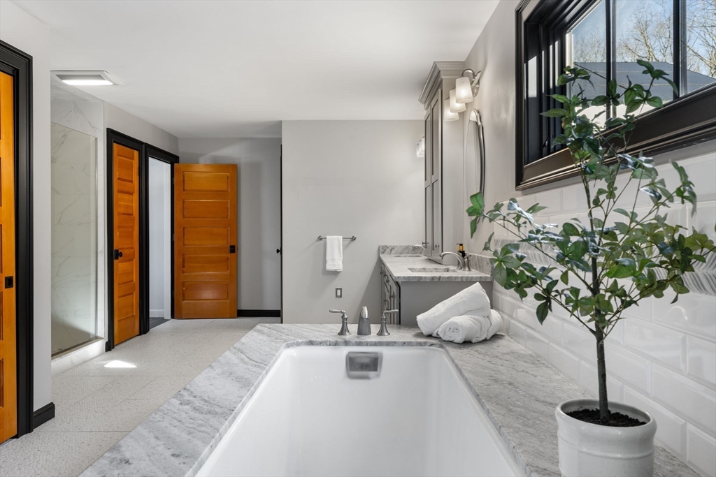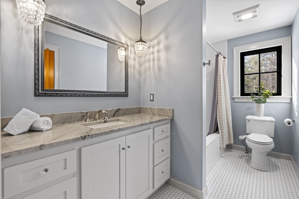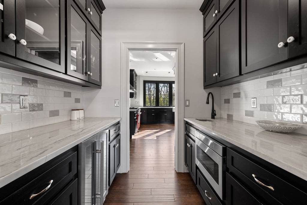 Custom-built Colonial set on a private 1-acre cul-de-sac lot in the sought-after Woods at Mirimichi. A grand two-story foyer opens to a thoughtfully designed home featuring a gourmet kitchen with Bertazzoni Italia range, 48” Profile refrigerator, quartz countertops, and an open-concept living area with gas fireplace. Formal dining and living rooms with coffered ceilings and French doors are connected by a Butler’s pantry with sink and beverage fridge. The second floor offers a spacious primary suite with walk-in closet and spa-like bath, plus a guest suite with private bath, two additional bedrooms, and full bath. A three-season room overlooks professionally landscaped grounds with patios, outdoor speakers, and irrigation well. Additional highlights include approximately 800 sq ft of finished bonus space above the garage including a home movie theater, a 10’ basement ready for expansion, 3-car garage, security system, and back up generator.