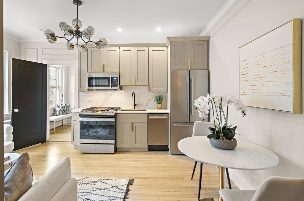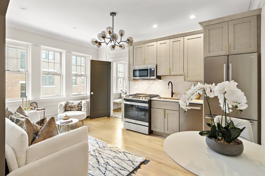 Prime Cleveland Circle location in an elevator building! This sun-filled upper-level unit has been beautifully renovated with high-end finishes, a modern neutral palette, and hardwood floors throughout. The sleek kitchen features pro-grade appliances, quartz countertops, and a full backsplash. The updated bathroom showcases large-format tile and elegant brass-toned fixtures. A smart, open layout provides excellent space for everyday living and entertaining, while the bedroom offers a relaxing retreat. Additional highlights include a low condo fee, cat-friendly association, and an impressive shared roof deck. Ideally located near Boston College, Chestnut Hill Reservoir, the B, C, and D Green Lines, restaurants, shops, and downtown Boston. A rare opportunity offering exceptional value for buyers, professionals, or investors.