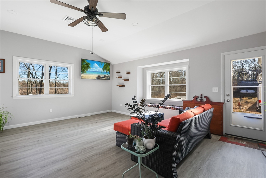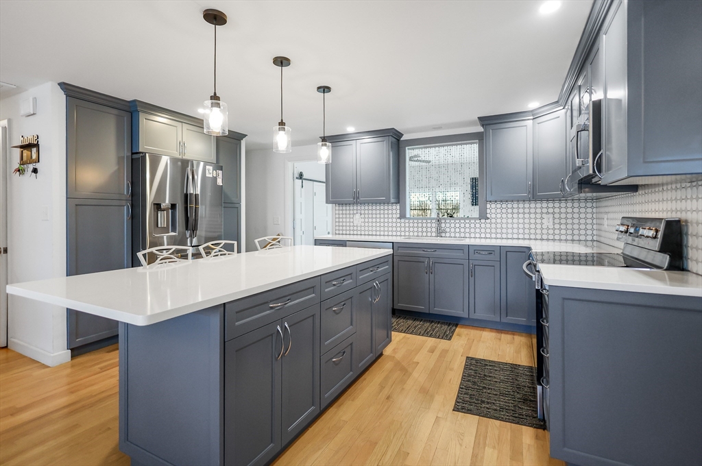 Spacious ranch in desirable West Methuen location with easy access to Highway. Enjoy this completely remodeled home with upgraded kitchen complete with kitchen island, Quartz counter tops, stainless steel appliances and upgraded custom cabinets. The home also features hardwood throughout, an open inviting floor plan and a family room complete with vaulted ceiling that leasds to a deck that overlooks a large flat yard.