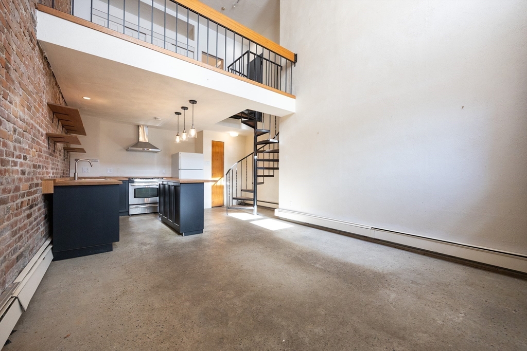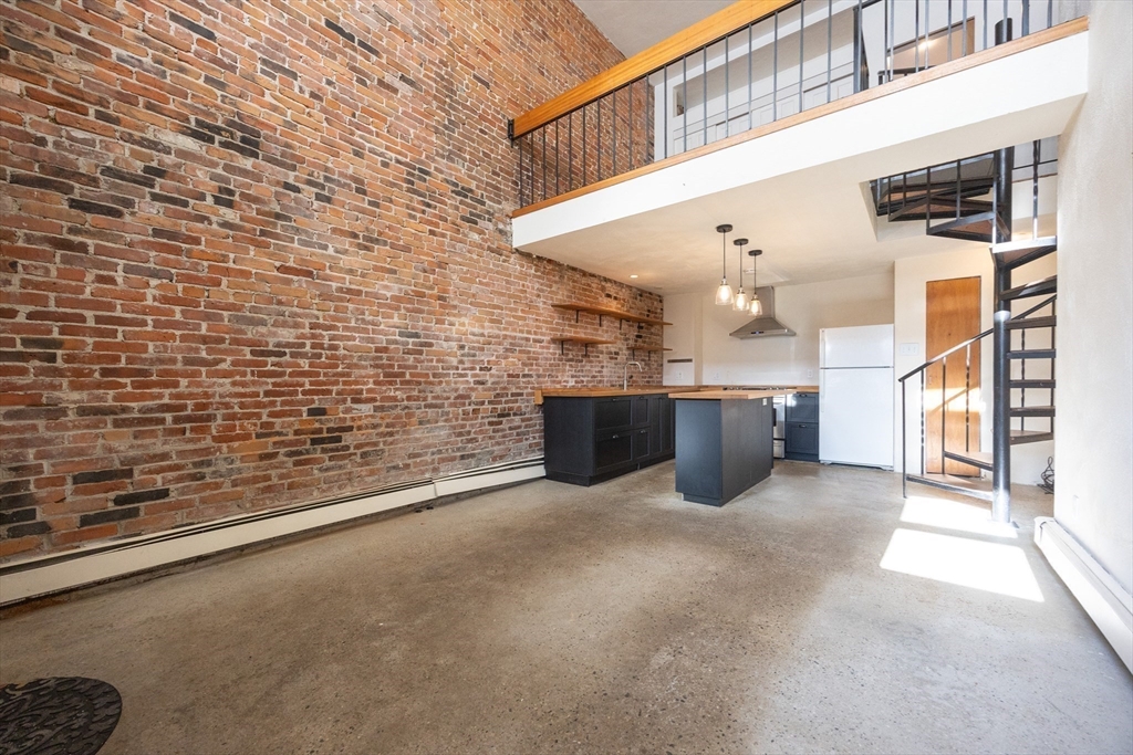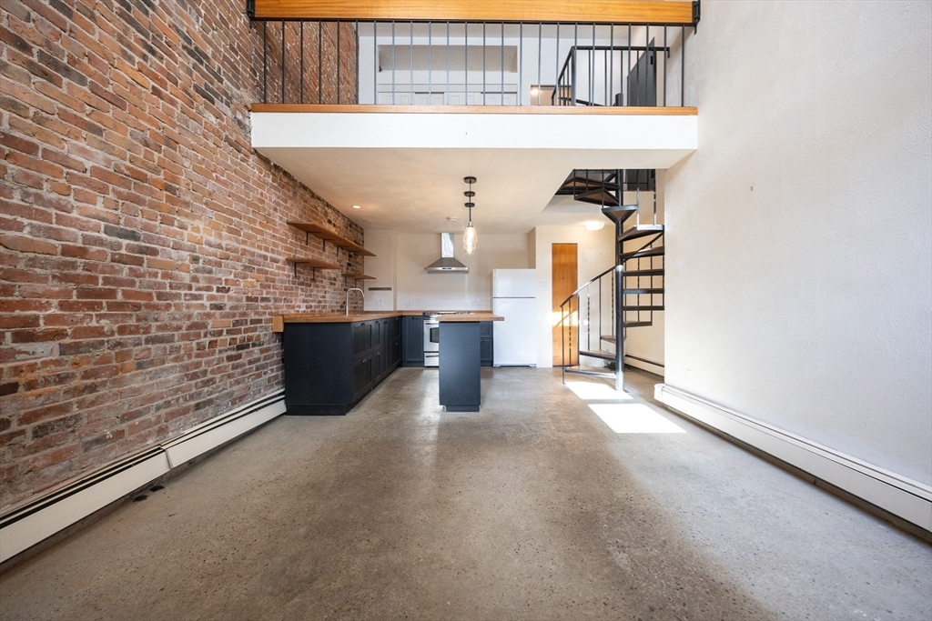 Stylish loft-style 1-bedroom condo in a classic brick brownstone at Third Chelsea Condominium. This two-level residence features dramatic exposed brick, soaring ceilings, and an open-concept layout ideal for modern living. The renovated kitchen offers custom cabinetry, butcher block counters, open shelving, and a large island with seating. A spiral staircase leads to the upper-level bedroom with hardwood floors, ample closet space, and an open overlook to the living area below. Updated bath with contemporary finishes. Additional highlights include engineered hardwood and concrete flooring, gas heat, intercom entry, common laundry, and one assigned off-street parking space. Professionally managed association w/ low monthly fee including water, sewer, exterior maintenance, snow removal, and reserves. Conveniently located near public transportation, shopping, parks, major highways, and downtown Boston. A unique opportunity to own a character-filled home in a vibrant Chelsea neighborhood