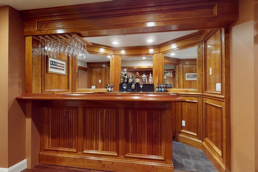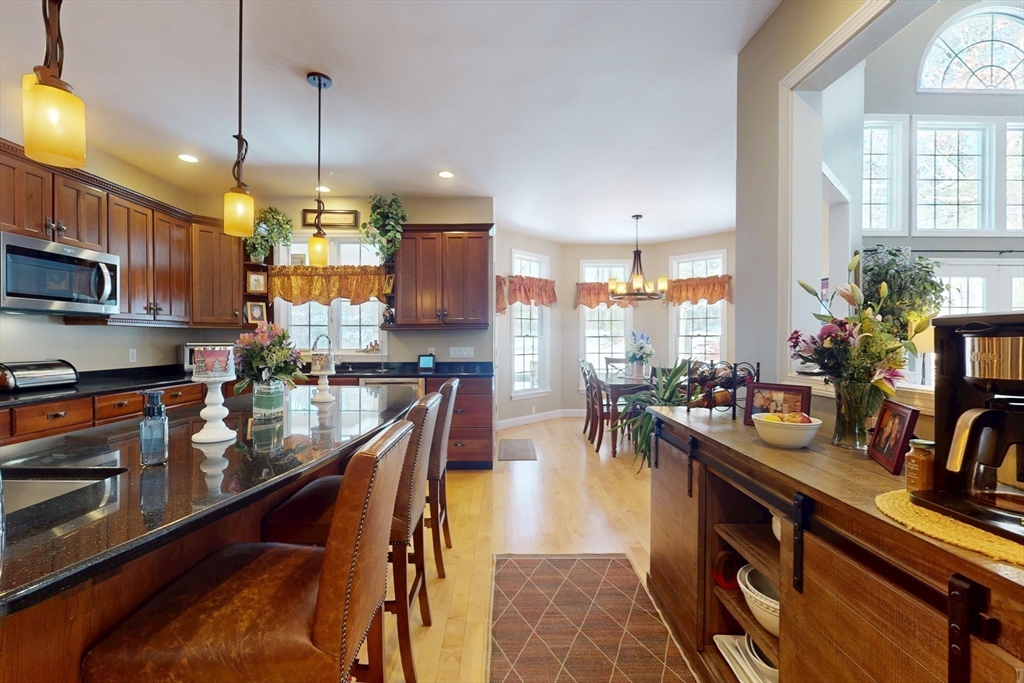 Welcome to a beautifully designed 5 bed, 5.5 bath home that balances elegance, comfort, and flexibility for modern living. Built for both everyday ease and standout entertaining, the home features a luxurious primary suite with a gas fireplace in the sitting area, a spa-like bath with jacuzzi tub, a generous walk-in closet, and a slider out to a private 26' x 16' outdoor balcony perfect for morning coffee or evening sunsets. Ideal for multi-generational living or extended guests, the private in-law/au pair suite offers a separate entrance while providing independence without separation. The finished basement is an entertainer's dream featuring a custom cherry wood wet bar, along with a private office well suited for remote work or creative use. Additional highlights include a 3 car garage with heated floor for year round comfort and a large screened patio off the kitchen. Set in highly desirable North Walpole, this home delivers space, privacy and thoughtful design at every turn!