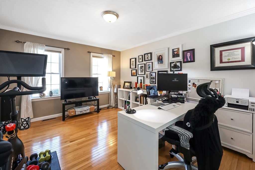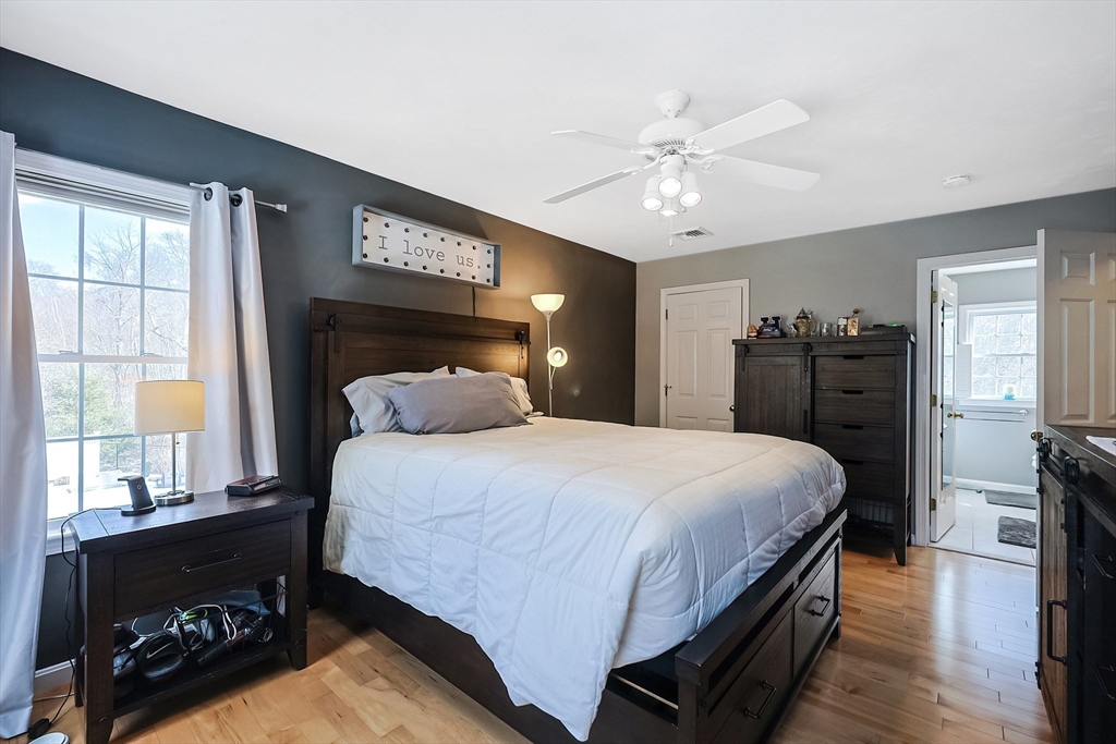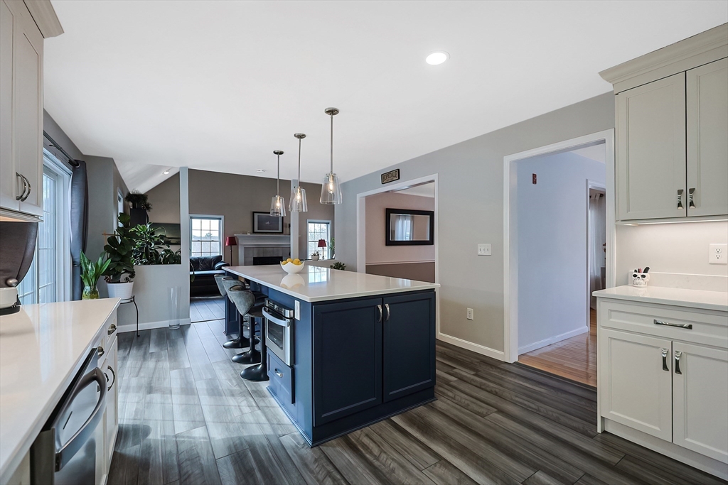 Welcome to this stunning 4-bedroom, 2.5-bath Colonial located in the desirable Harmony Estates of Hopedale. Set on an oversized, professionally landscaped lot, this home offers both elegance and comfort. The beautifully renovated kitchen features stainless steel appliances, including a double oven, a large quartz island with a built-in microwave and premium vinyl flooring. The vaulted-ceiling family room showcases modern, durable laminate flooring and a tiled, wood-burning fireplace, perfect for relaxing or entertaining. A formal living room, currently used as a home office, adds flexibility to the layout. The fourth bedroom is presently utilized as a dressing room. The finished lower-level features a home office and a bonus room that opens directly to an outdoor patio. Head outside and enjoy summer to the fullest with a gorgeous in-ground heated pool. Additional highlights include new AC units installed in 2025 and a prime location with easy access to shopping and major highways.