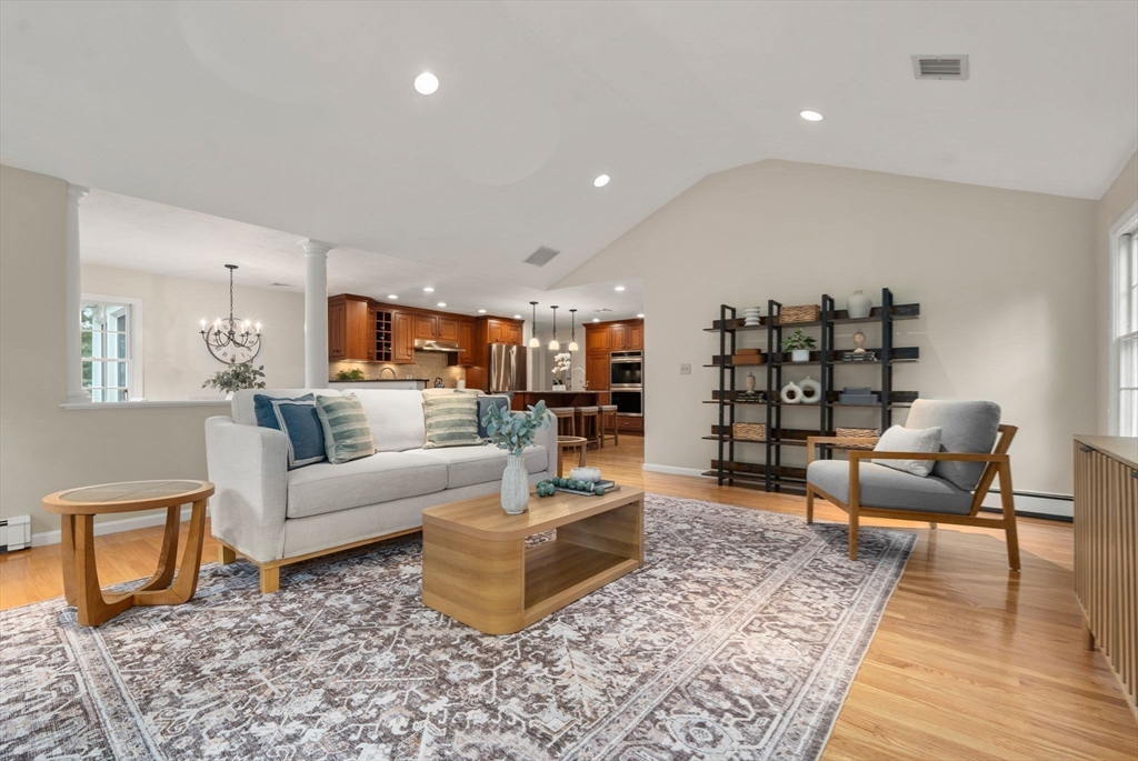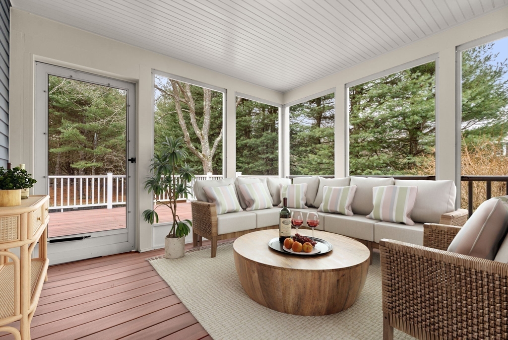 An exceptional setting and sought-after neighborhood on the Dover line distinguishes this expanded, renovated and impeccably maintained colonial. Reimagined to create open-concept, indoor/outdoor living with stellar attention to detail, the home showcases a well-appointed kitchen with custom inset cabinetry, a spacious island, dual sinks and double ovens, flowing into a sun-filled breakfast room and cathedral family room with fireplace. The wainscoted dining room leads to a mahogany farmer's porch and elegant living room, while the original family room serves as a private study or 1st floor bedroom with a full hall bath and exterior access. Upstairs, 4 large bedrooms feature hardwood floors, ample closet space and a fantastic laundry room. Two expansive media/fitness/game rooms, a 2nd office and powder room add space and flexibility on the lower level. Outdoor living is enhanced with a screened porch, composite deck and patio overlooking pristine, park-like grounds. Worth the wait!