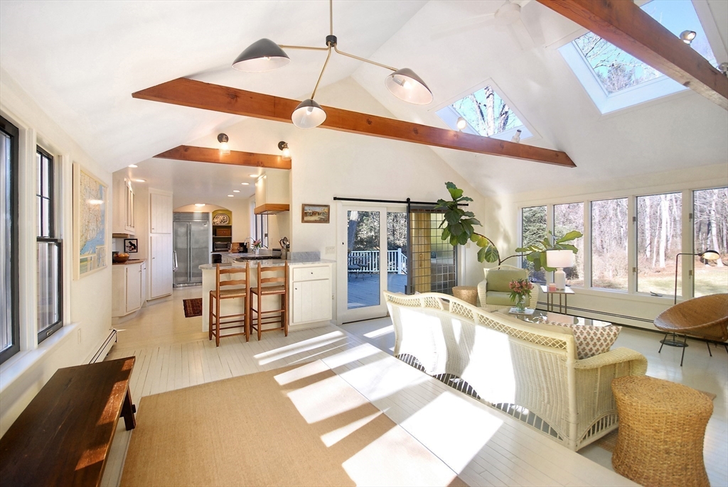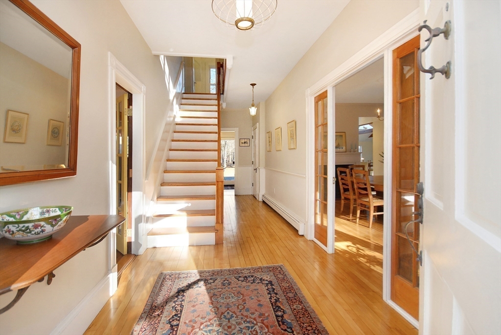 Natural light floods this south-facing, 1908 charming Dutch Colonial home set on a 3/4 acre, verdant lawn between Hildreth Corner and Barretts Mill Organic CSA farm stand. Sidewalks to town or walk out your back door & enjoy miles of walking trails on contiguous protected acres of conserved land. A flexible floorplan includes high ceilings hdwd floors & refurbished dbl hung windows throughout. Updated Kit opens to a sundrenched FR w beamed, skylit ceiling & wood stove. DR w fp, wood paneled LR & corner office w built-ins complete the 1st floor. Upstaris are 3 brs, including a thoughtfully imagined en-suite MBR w custom, period-correct built in closets & dresser. Oversized 3 car gar w skylights, storage & workshop area leads to a 13x7 bonus room. This home embodies all of the charm & character of a bygone era while offering modern conveniences & updated electrical and Viessman heating & hot water systems. Don't miss this opportunity to make 90 Barretts Mill Road your cherished new home!