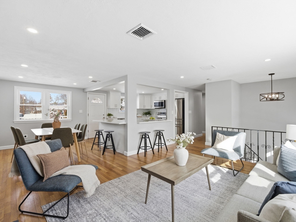 Move-in-ready split ranch located in desirable Faulkner neighborhood. This home offers flexible living space, modern updates, and excellent indoor-outdoor flow. The upper level features three bedrooms and one full bath, a brand-new kitchen, and beautifully refinished hardwood floors. The home is equipped with forced-air heating and central A/C, providing year-round comfort. The lower level expands your living options with two additional bedrooms, full bath, and a washer and dryer—ideal for extended family, guests, or home office use. Enjoy outdoor living with a large deck off the kitchen, perfect for entertaining, along with a patio, grassy area, and a fully fenced backyard offering great space for relaxation or play. A front yard adds curb appeal, while the driveway accommodates up to three cars. Located close to local amenities and transportation this offers a great opportunity to own a turnkey property in one of Malden's most sought after areas.