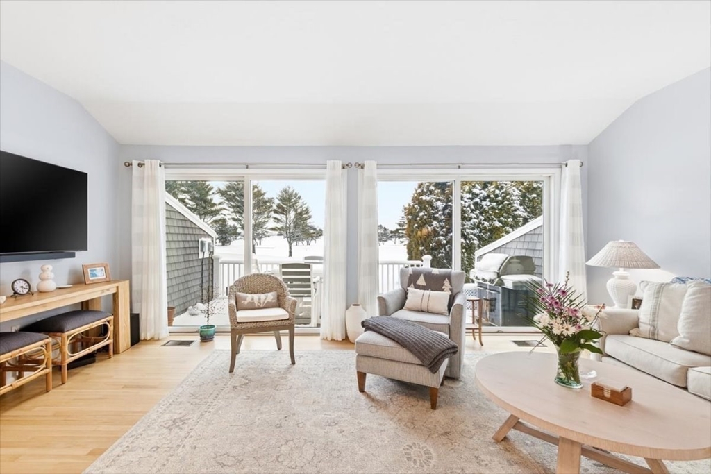Undoubtedly one of the most lovely residences in the Scituate Country Club condominium complex; with a prime location offering expansive, unobstructed golf course views. A stunning renovation with exquisite attention to detail is evident throughout, showcasing high-end finishes in every room. First floor features a sought-after open floor plan, large kitchen with oversized quartz island, inviting dining area, cozy den, laundry room, half bath and a warm, welcoming, living room with a natural gas log fireplace. The second level offers a luxurious primary bedroom suite and beautiful new bath and a large private deck for relaxing and enjoying the picturesque landscape. An additional bedroom with gorgeous bath and private deck complete level 3. A finished lower level extends to a large storage room & mechanical area. This is a rare opportunity to reside in the highly desirable Third Cliff neighborhood with access to the Spit, beaches, boating, kayaking and the scenic North River estuary.