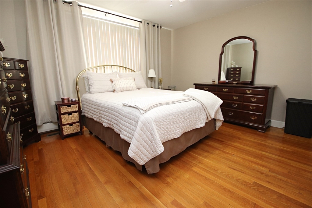 MUCH SOUGHT-AFTER Sprawling Ranch boasting 8 rms, 3 bedrms (all w/ceiling fans), hardwood flooring, 2 baths (one w/newer shower door), eat-in kitchen w/dining area, ceramic tile flooring, bead board, some newer sliding cabinet shelves, slider to heated breezeway, bright & sunny living room w/gas fireplace open to dining room, great open floor plan - great for entertaining! Finished lower level offers great space for the large or extended family, newer ceramic tile flooring & 2nd fireplace. Central air w/newer condenser (2020), 6 newer, solid panel interior doors, new hot water tank (not currently being used), new front walkways, one car attached garage w/newer door, large, level yard w/new storage shed & newer stone patio, newer fence, new bulkhead, spacious circular driveway & irrigation system. Perfectly located in desirable Lynn Fells neighborhood, close to shopping, restaurants, Market Street, Logan Airport & all major highways. Shows pride of ownership - MINT! "Welcome Home"
