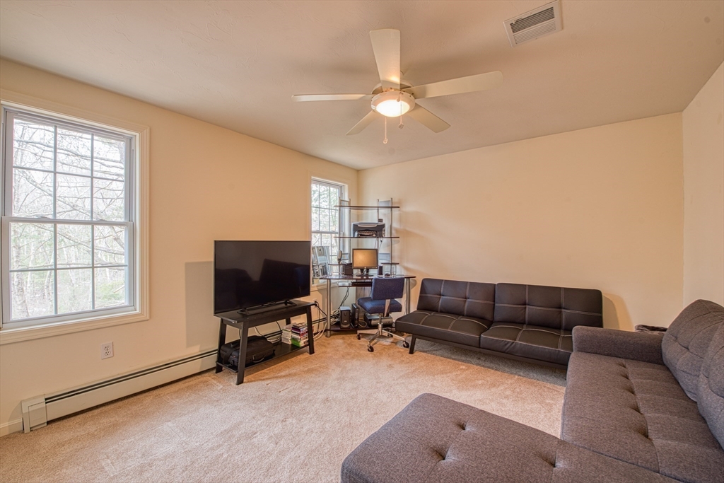 Private 7.5-Acre Retreat! This 2004-built Colonial offers the perfect blend of comfort and seclusion on a secondary road. The foyer opens into a fireplaced living room featuring gleaming hardwood floors. A spacious kitchen offers plenty of room for all your appliances and flows seamlessly into a formal dining room—ideal for entertaining. Upstairs, the primary bedroom boasts a walk-in closet and a Hollywood-style bathroom, plus two additional bedrooms. This unique property sits on a massive lot. While you have the convenience of a neighbor next door, the land behind you consists of protected conservation wetlands, ensuring that no one can ever build behind you. This provides an unparalleled "forever green" privacy buffer and a permanent wooded view. It is the perfect setup for those seeking a quiet, nature-first lifestyle with a manageable, low-maintenance yard. Enjoy the peace of a 7-acre forest in your own backyard! Do you commute, house is 3.1 miles away from Norfolk Commuter Rail