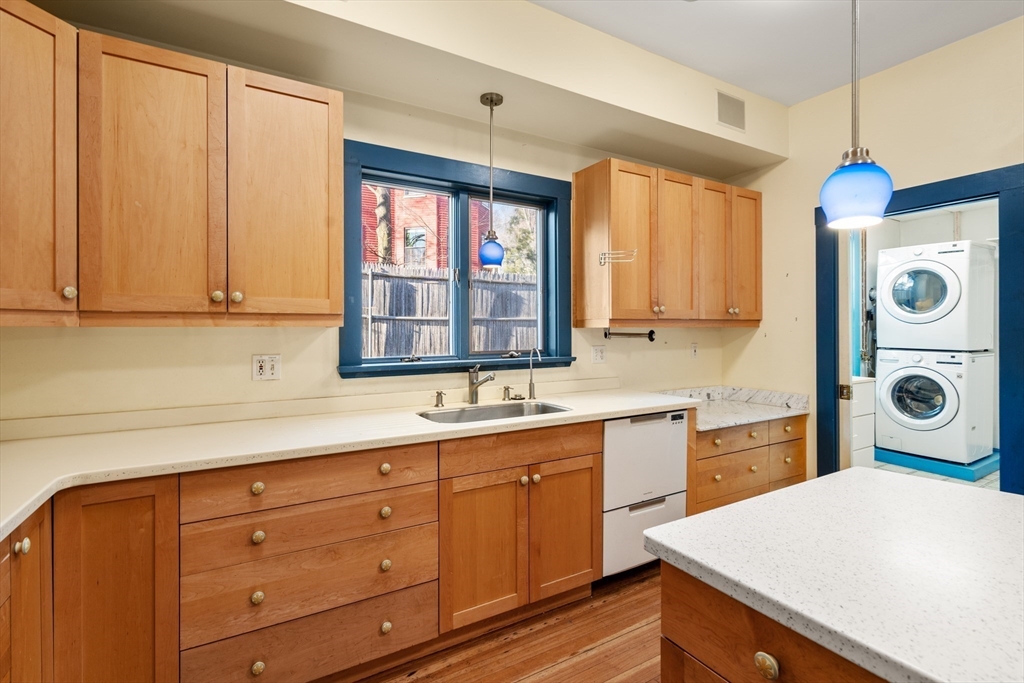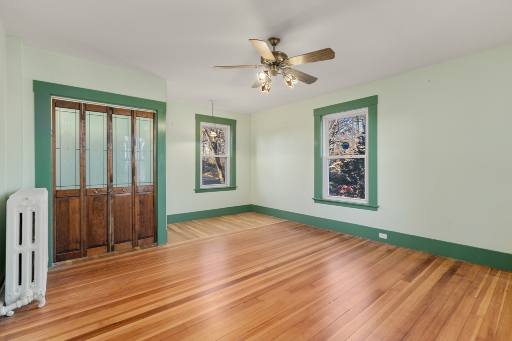 This spacious, sun filled Antique Colonial with central air conditioning (2023) offers endless possibilities and awaits your personal touch. A gracious entry foyer with a winding staircase welcomes you into this 5 bedroom, 2.5 bathroom home with high ceilings, wood floors and large windows. This home has a flexible open floor plan with many updates and amenities, including a brand new 2025 bathroom, a 2000 kitchen renovation with corian and marble countertops, a 2017 boiler, a 2022 water heater, a 2021 improved front porch ( 30'7" X 27' ), a 2023 heat pump for secondary heat and extra storage space in half bath, mudroom, attic and basement.. A rear mudroom leads to a paved driveway which can easily accommodate up to 4 cars and a one car garage. A rear porch (15'4" X 5'1"), overlooking the garden is an added bonus to this special home located in the heart of Watertown and close to Victory Field, Watertown Square with restaurants, shops and public transportation.