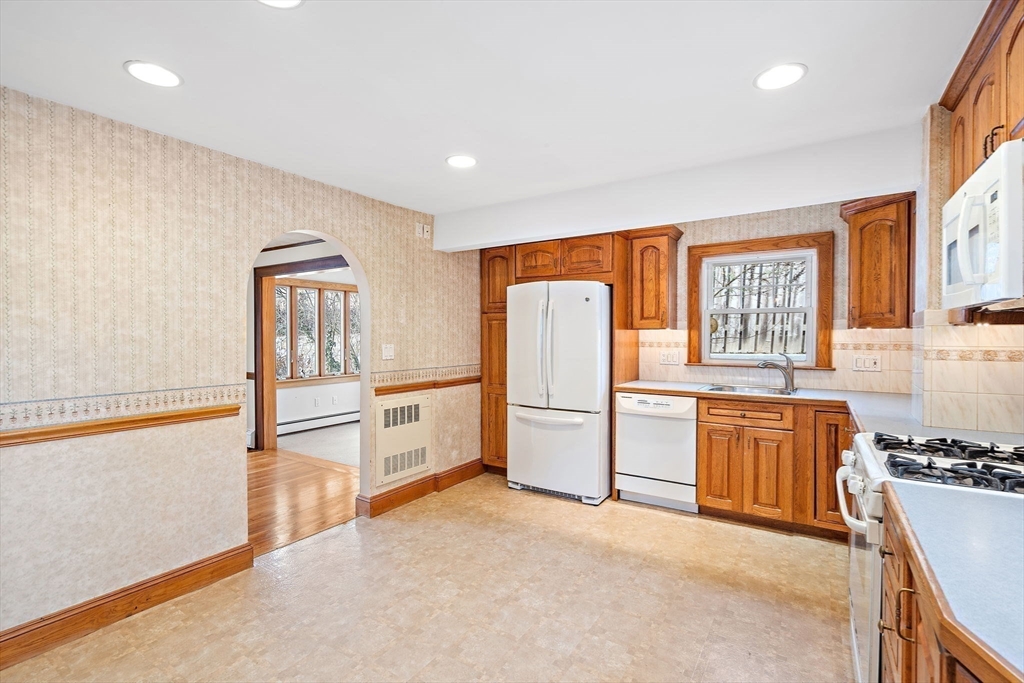 A fantastic single-family opportunity in a convenient Belmont location near grocery store, shops, public transportation, and Beaver Brook Reservation. The first floor offers a flexible layout with a beautiful fireplaced living room with french doors, dining room and a large eat-in kitchen with abundant counter space, great storage, gas stove, and recessed/under-cabinet lighting. A new full bath added 2019. Two additional first-floor rooms provide versatility—one ideal as a sunroom or office, the other a den or play space with a glass slider to the wooden deck and backyard. The second floor includes three bedrooms and a 2nd full bath. Most rooms feature gleaming hardwood floors, and the home offers excellent storage potential. Additional highlights include two driveways, direct walk-in basement access, and an electric garage door. Close to the MBTA 73 bus, Commuter Rail, and everyday conveniences.