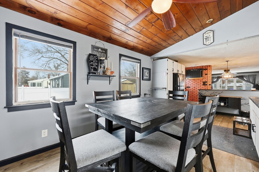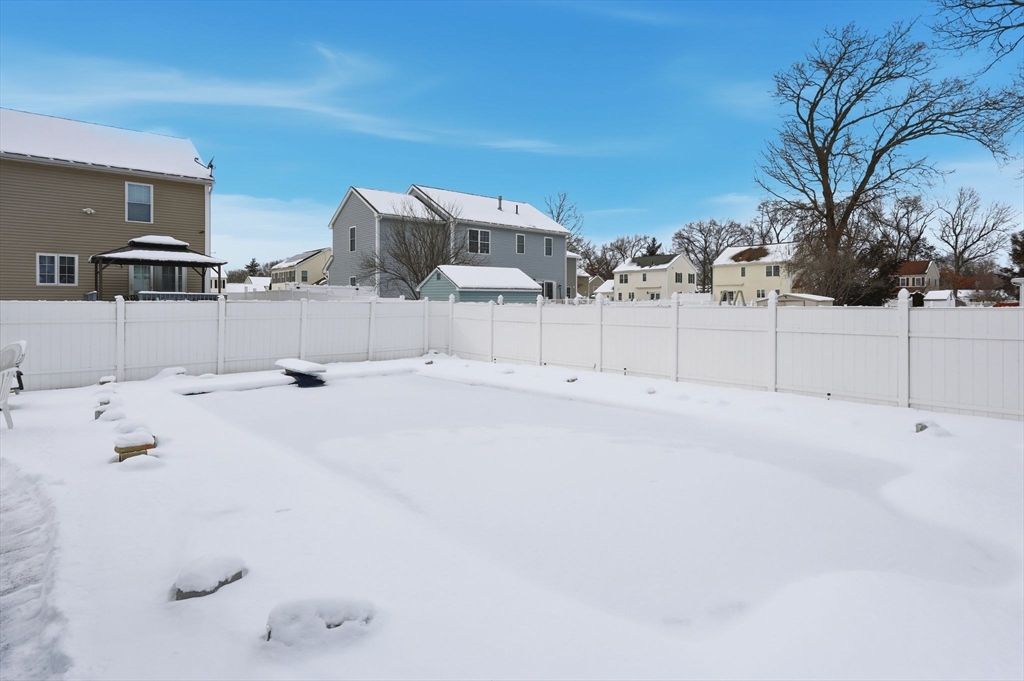This 3 bedroom ranch offers convenient one floor living with hardwood floors in the living room & a wood stove. The kitchen has a spacious dining area with vaulted wood ceiling and a slider out to the back yard. All three bedrooms have hardwood flooring, the main bedroom has a vaulted ceiling. There is a partially finished basement for additional living space, and a room currently being used as a gym. The back yard is completely fenced in with an in ground pool and storage shed.