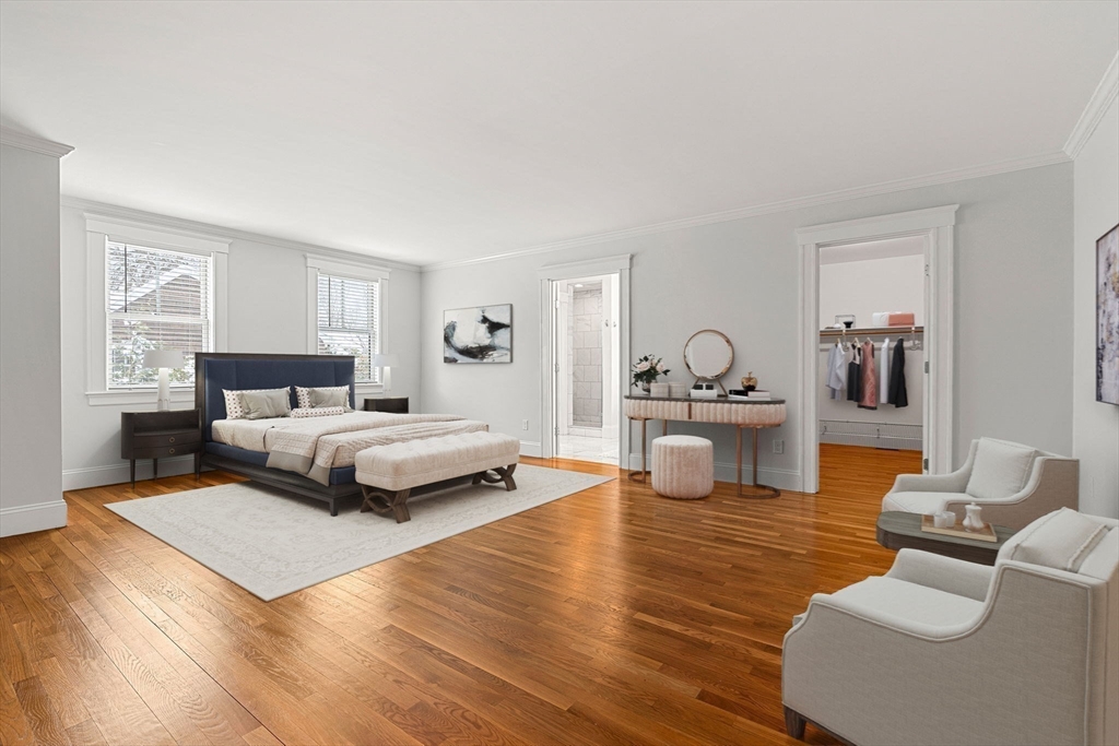 Experience the perfect blend of luxury and effortless living in this stunning custom-built residence, thoughtfully rebuilt and expanded to offer a sophisticated, maintenance-free lifestyle. Bathed in natural light, the flexible floor plan begins with a magnificent first-floor primary suite featuring a marble-clad bath, soaking tub, and walk-in shower. The heart of the home is a chef’s kitchen anchored by a granite island and premium Bosch appliances. Entertaining is seamless, whether hosting formal dinners by the wood-burning fireplace or relaxing in the spacious family room with its sleek gas fireplace and glass doors to the yard. A bright four-season sunroom offers a peaceful retreat year-round. The second level provides four additional bedrooms, two full baths, and a convenient second laundry. Downstairs, a heated bonus room with a third fireplace full bath serves as a gym or media room. Sited on a flat lot steps from Wedgemere station, this is suburban living at its best.
