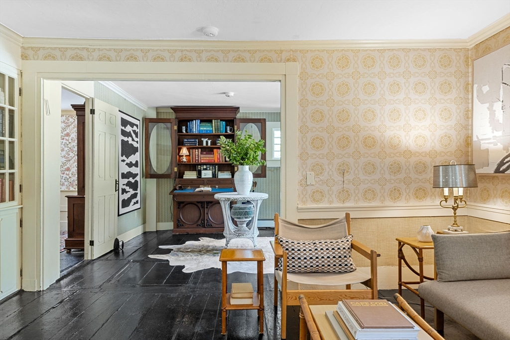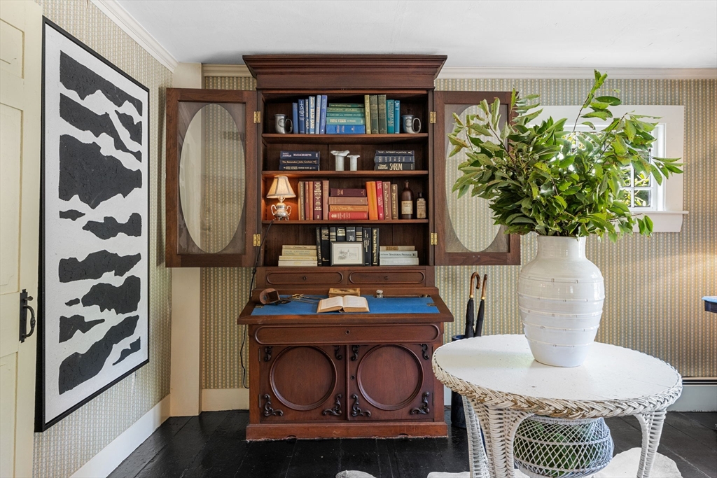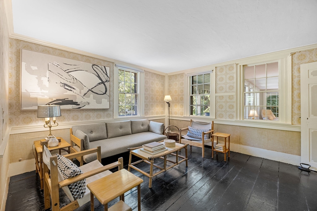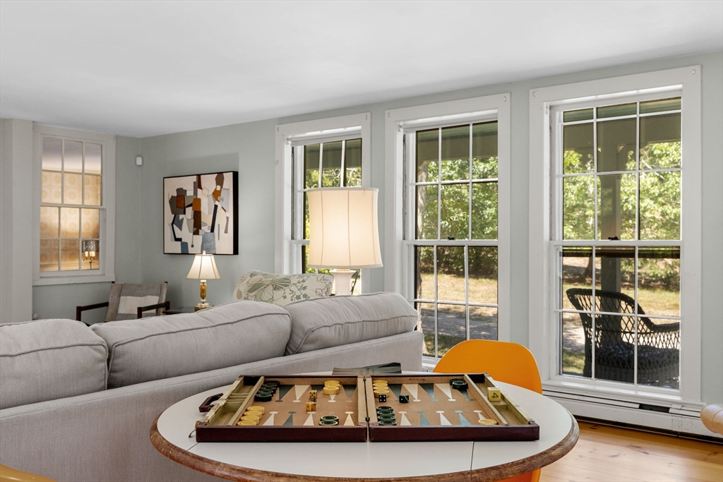 One of Truro's oldest homes, this beautiful 1827 antique sits on 1.85 acres of natural landscape, set well back from the road for privacy. Period details - original floors, wainscoting, moldings, built-ins - blend with thoughtful updates, including a spacious family room and wraparound covered porch. The 5-bedroom, 2.5-bath layout features a large eat-in kitchen, and multiple gathering spaces inside and out. According to local lore, Henry David Thoreau stayed here during his summer visits to Truro, drawn by his friendship with the pastor of the nearby church. A sizable outbuilding offers endless possibilities, and there's room for a pool. Enjoy proximity to the Blackfish restaurant, Truro Center, Pamet River, and the farmers market, with Fisher, Corn Hill, and Ballston Beaches all accessible via scenic back roads.