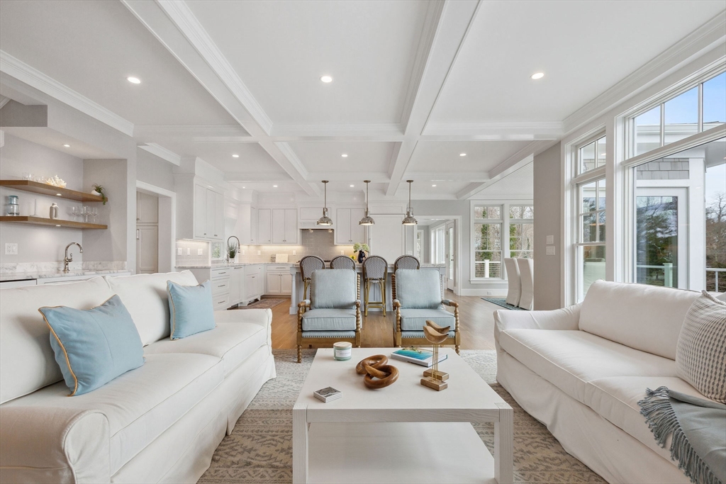 Experience the pinnacle of sophistication with this exquisite new build by Eastward Companies. Tucked off Tonset Road and with frontage on Main Street, this elevated home boasts lovely marsh and Town Cove views as well as swimming, fishing, and boating. This superbly designed residence features an open floor plan ideal for entertaining. The upscale kitchen flows into a spacious living area with a gas fireplace, built-in bookcases, and a light-filled dining room. The principal suite offers serenity and calming vistas, while the second floor includes three bedrooms with private baths and a cozy family room with a fireplace. The walk-out lower level provides additional finished space and a full bath. Outdoors, a heated salt water gunite pool and elegant hardscaping create a luxurious retreat. With preferred gas heat, central AC, and an attached two-car garage, this nearly 2-acre property is a rare gem in coveted East Orleans.