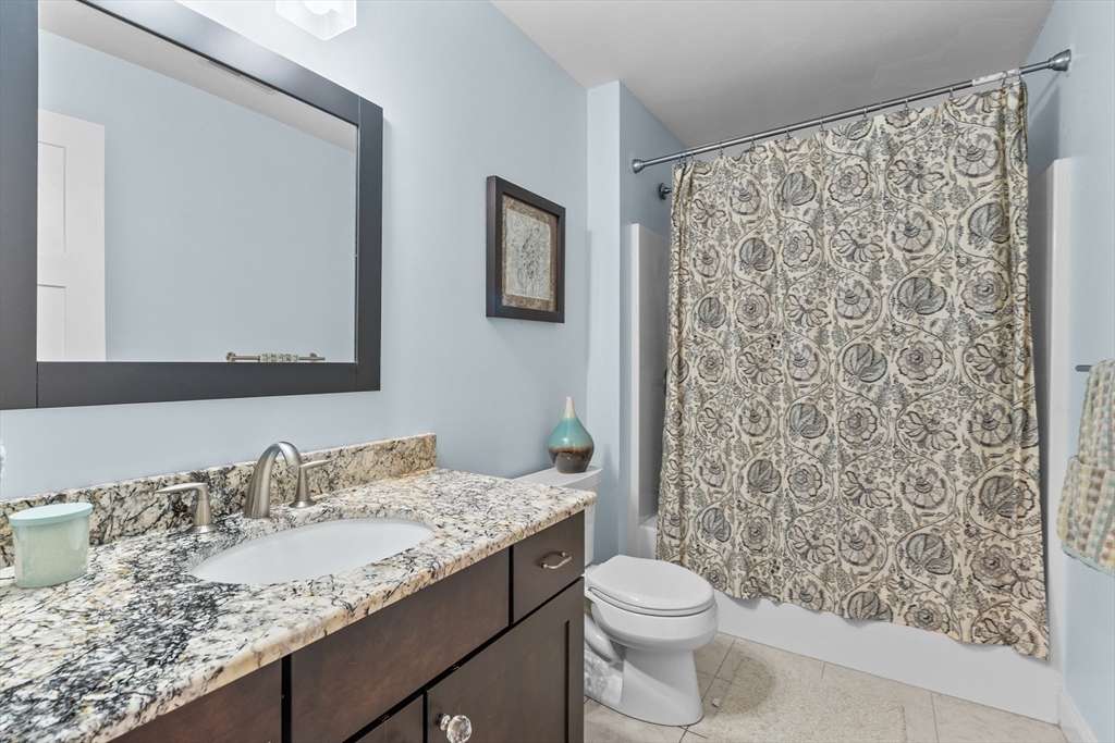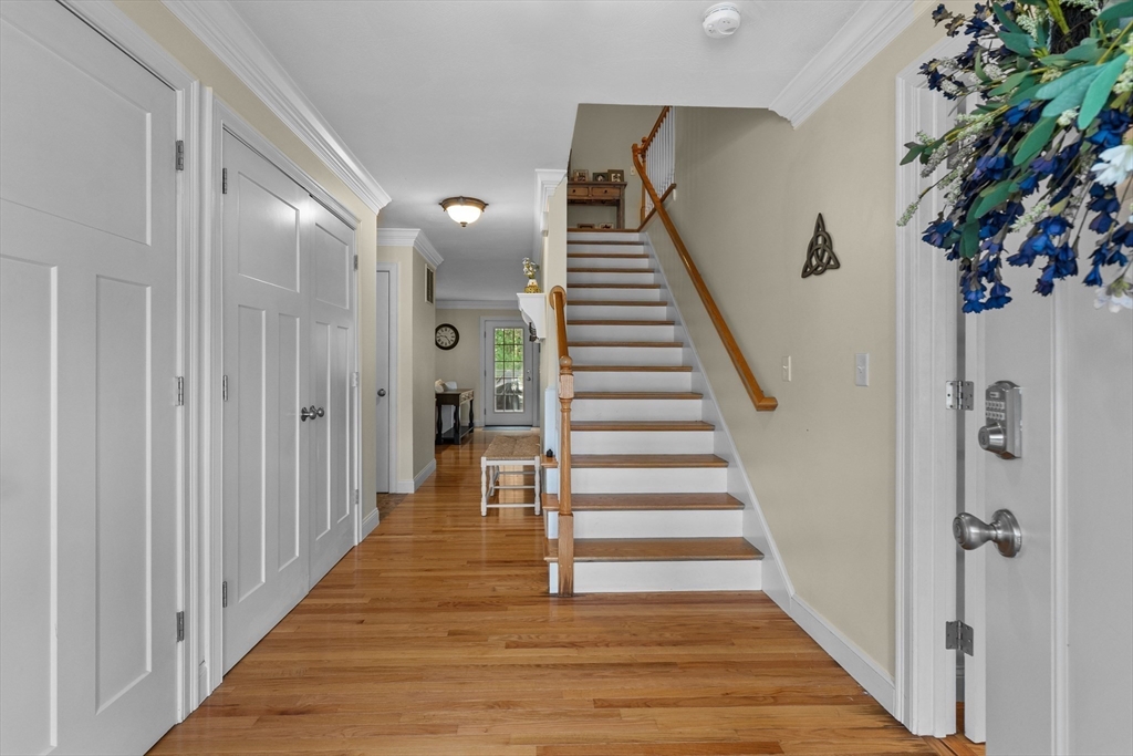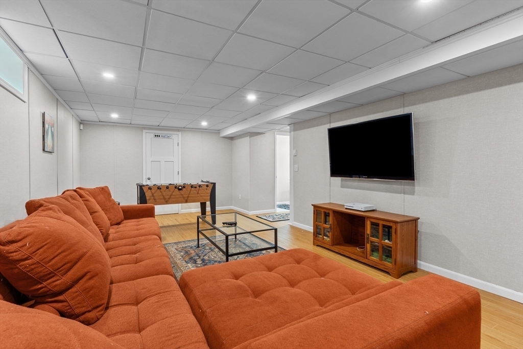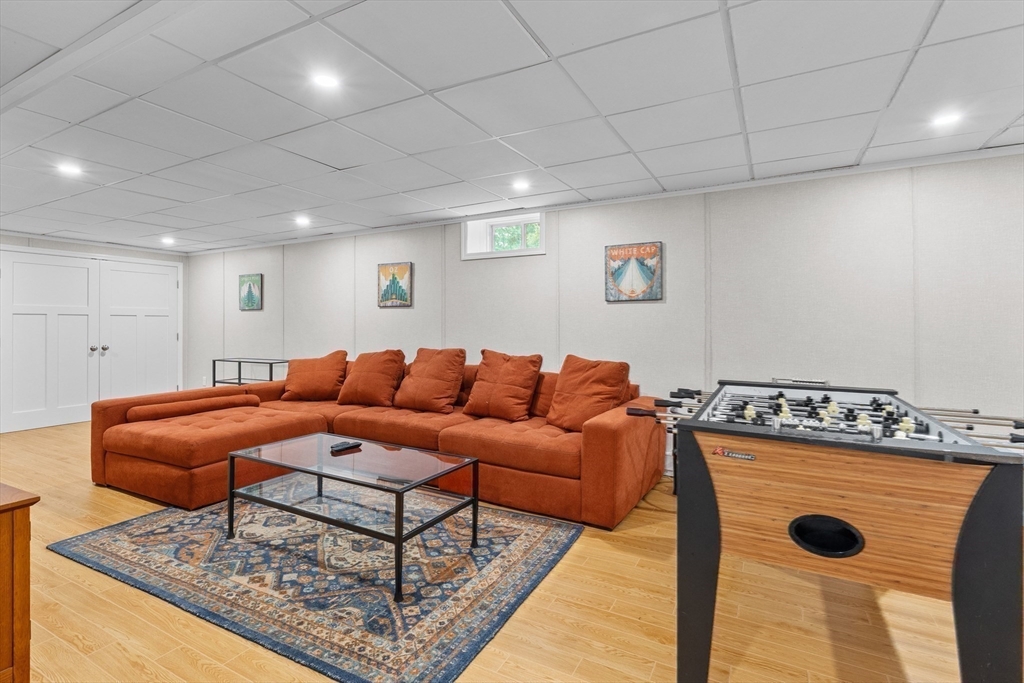 Absolutely stunning home featuring an open-concept floor plan with loads of curb appeal! A large foyer with an impressive amount of closet space opens to a handsome office. The kitchen, living room, and dining room all open to each other and are perfect for entertaining. The kitchen features upgraded cabinets, stainless appliances, and a center island. Gorgeous family room with fireplace and lovely dining room with French doors & beautiful trim work. The 1/2 bath, mud area off the garage, and W/D finish off the first floor. The second floor features 4 very spacious bedrooms, plus a bonus room. The primary suite has a beautiful bath with a double vanity and plenty of closet space. 2nd full bath in close proximity to 3 other bedrooms. The finished lower level offers functionality and is used as a game/exercise room with an additional half bath. The backyard features a patio with a built-in firepit and a hot tub. Hardwood throughout and too many amenities to list, this home has it all!