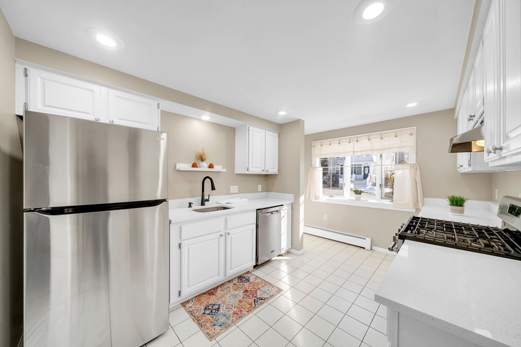 FRESHLY UPDATED & MOVE-IN READY CONDEX! This charming 2-bedroom, 1.5-bath townhouse at 11 Fernwood St features 1,312 sq. ft. of comfortable living on two levels. The heart of the home, the kitchen, was renovated in 2024 with stylish countertops, while appliances were replaced in 2023—perfect for cooking and entertaining. The living and dining rooms showcase elegant tile flooring, chair rails, and ample natural light, creating an inviting space to relax or host guests. Upstairs, both bedrooms feature walk-in closets and plush carpeting. Additional highlights include a full unfinished basement, 2-car garage, 4 off-street parking spots, a deck for outdoor enjoyment, and no HOA fee. Located in a convenient North Andover neighborhood near schools, parks, shopping, and public transportation. Don’t miss your chance to own this thoughtfully updated home!