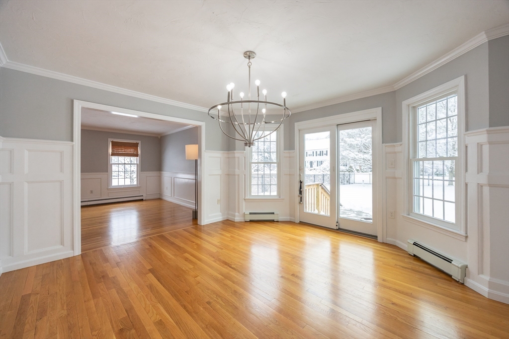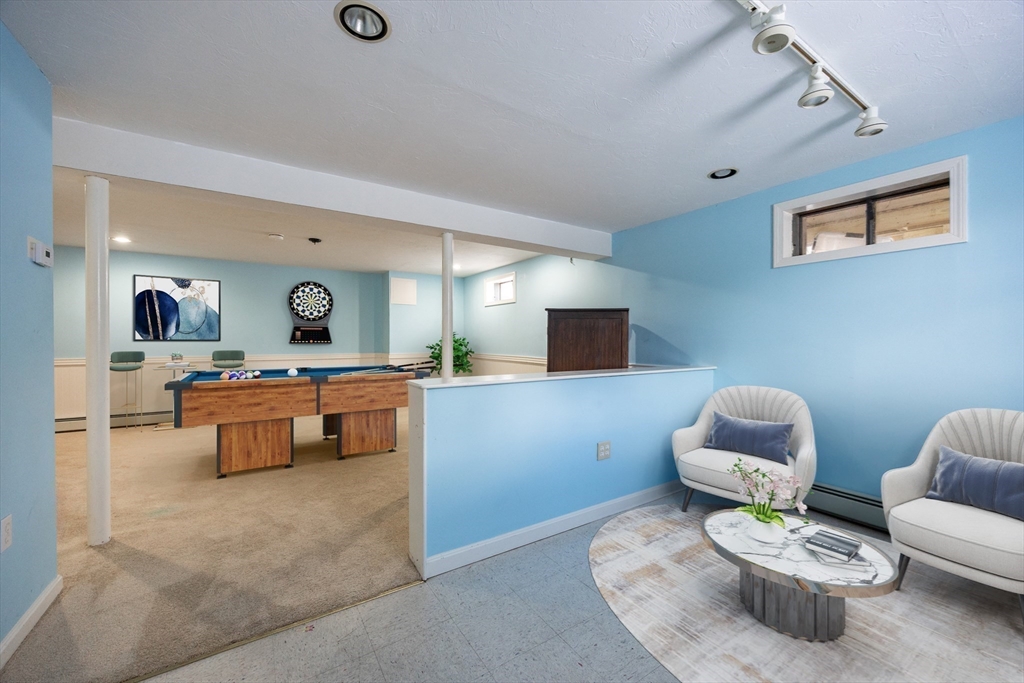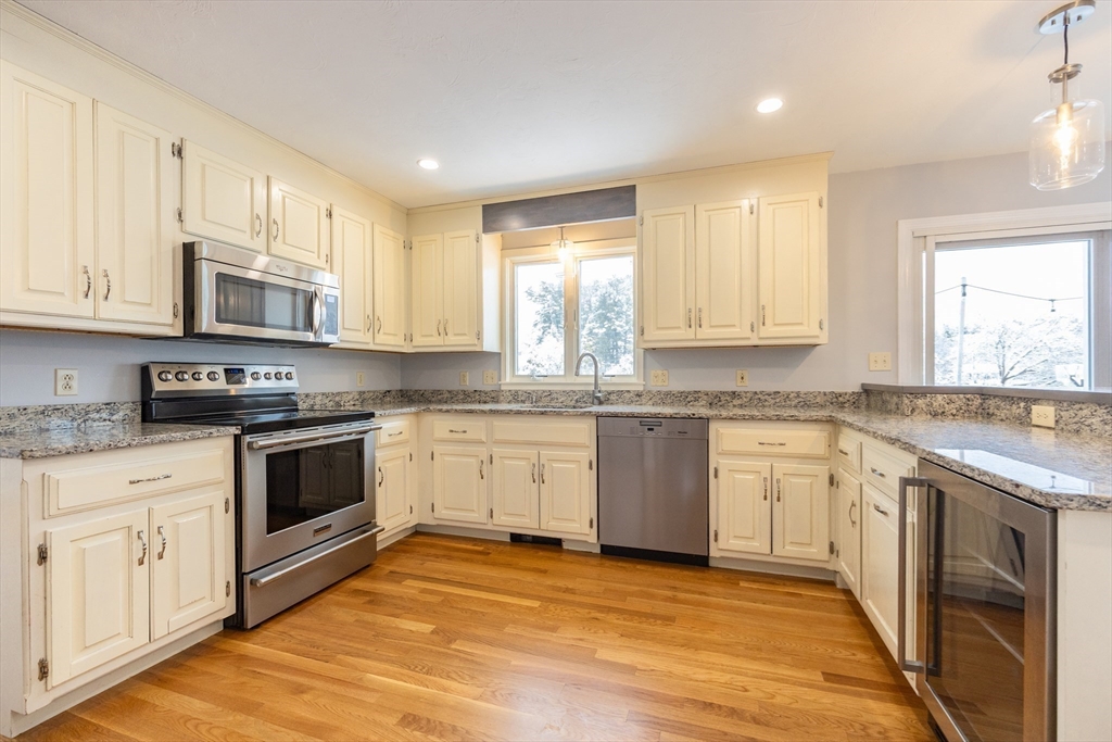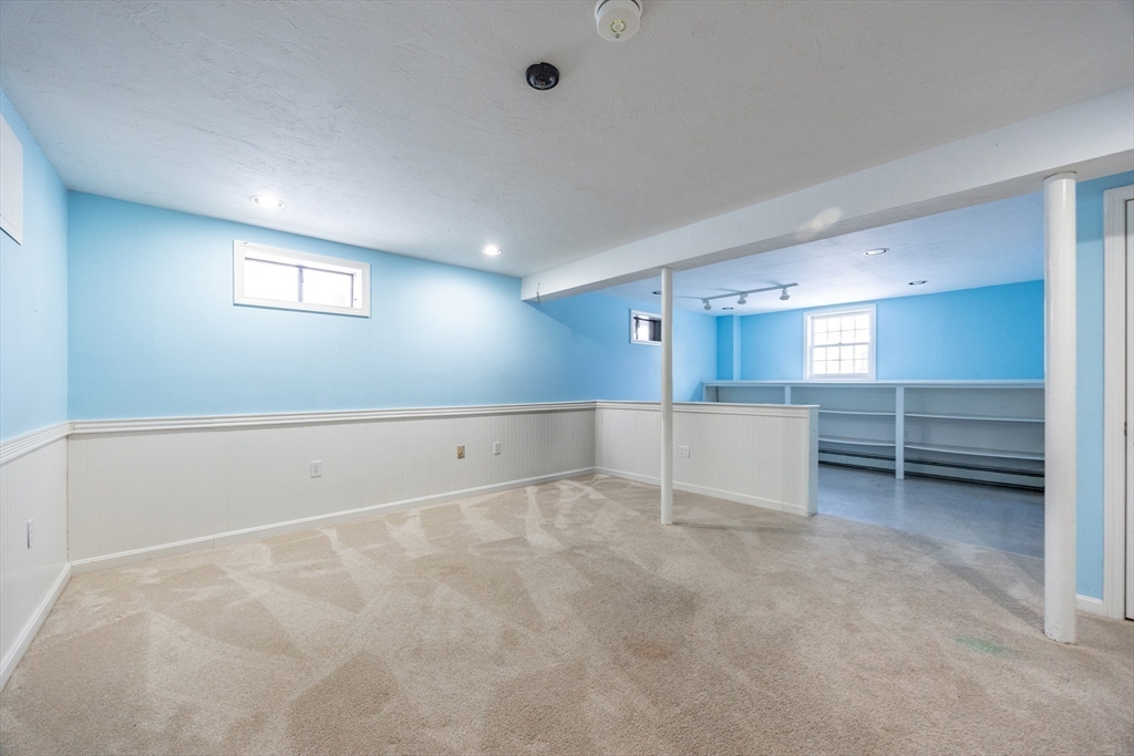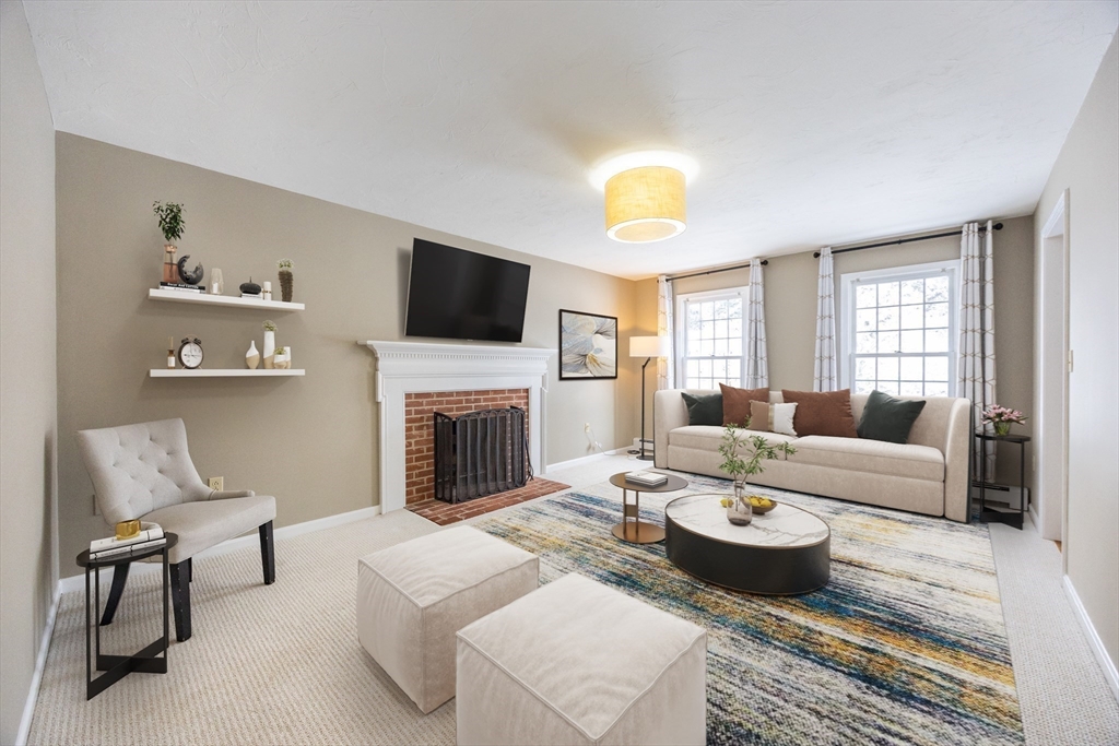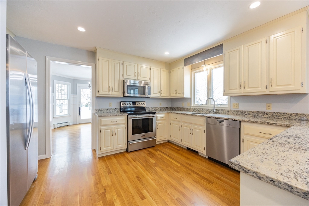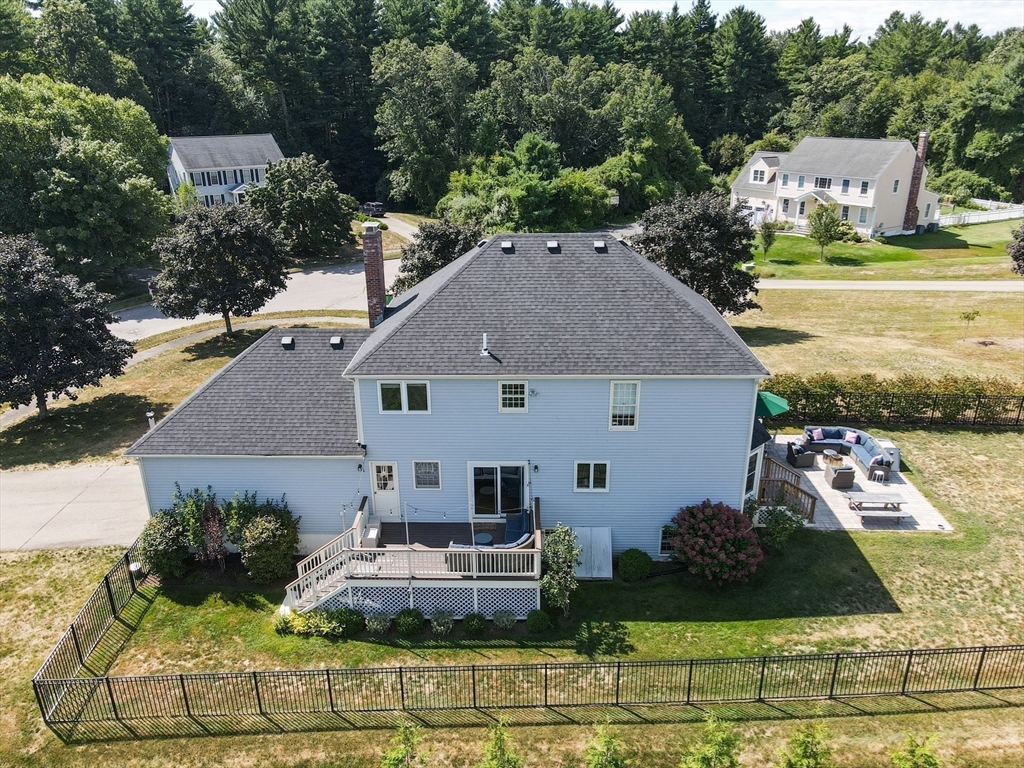 Graciously updated home on a lovely cul-de-sac on the Sherborn side of town; close to downtown, schools and the Upper Charles Rail Trail. Sunny kitchen features granite counters, hardwood flooring, SS appliances, bar/peninsula seating, new beverage fridge and a slider to the inviting deck. Spacious dining and living rooms offer flexible floor plan; fireplaced family room with brand new carpeting (2025). Updated half bath and laundry area complete the main level. Upstairs are four generously sized bedrooms, showcased by the primary bedroom with its new spa bathroom featuring a beautiful tiled shower, double vanity and lovely soaking tub. Updated hallway bathroom; two bedrooms with wood laminate flooring. Bonus lower level with beadboard, recessed lighting, built-ins and closets, ideal for a game room, office and exercise area. Newer roof (2021); patio and fencing (2024); exterior paint (2025); HW heater (2023). Fenced yard w/sport court. Truly a gem, in a great neighborhood!