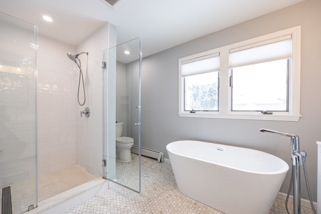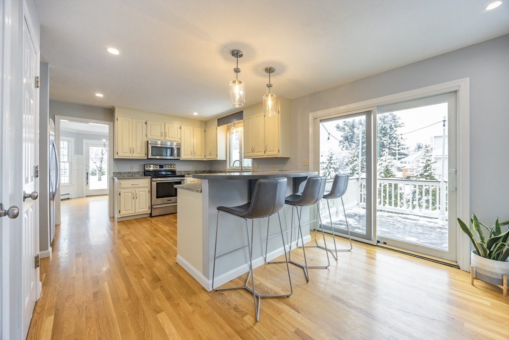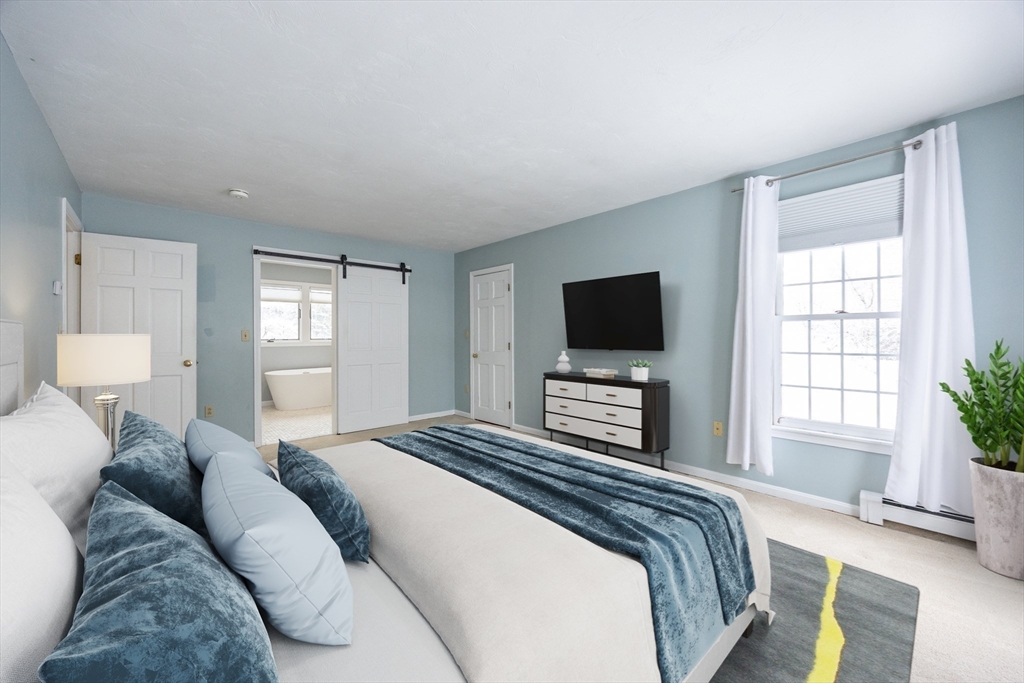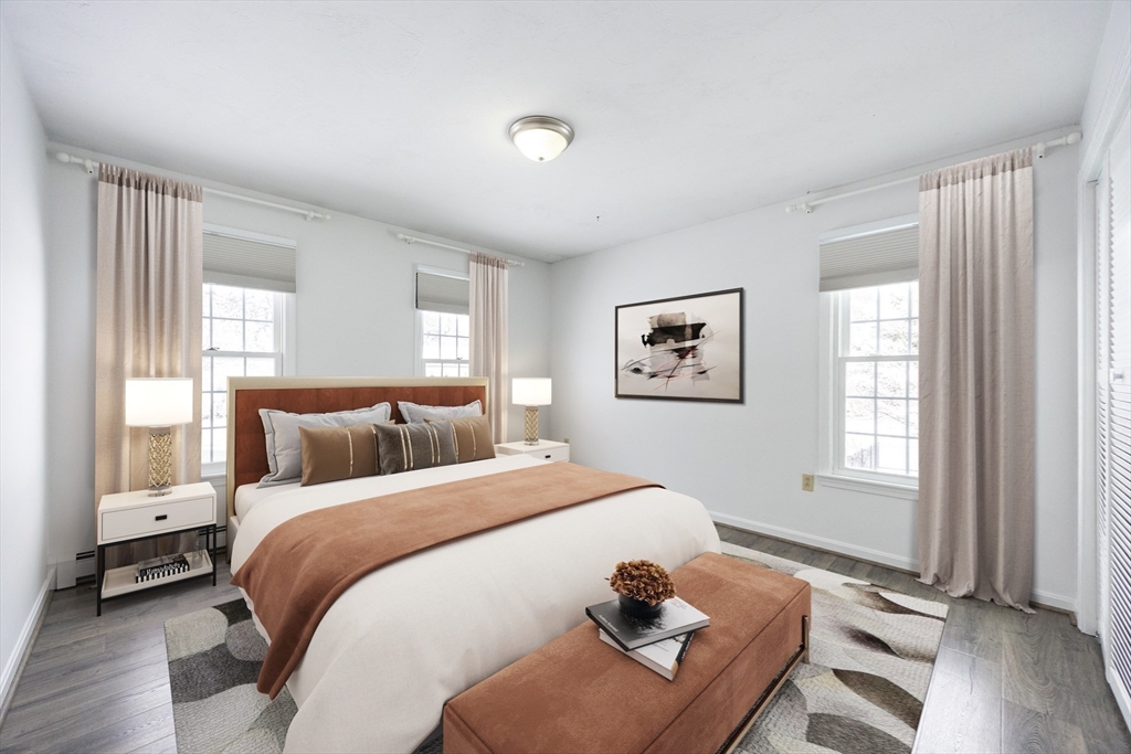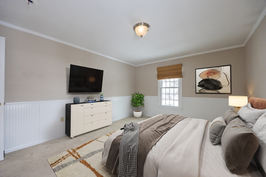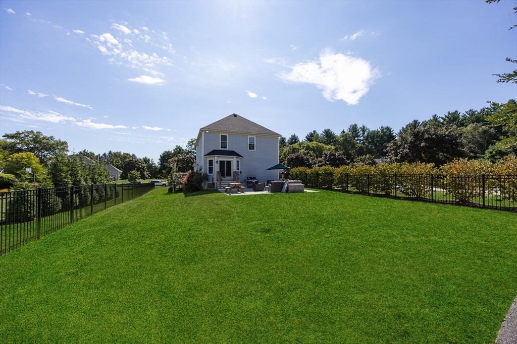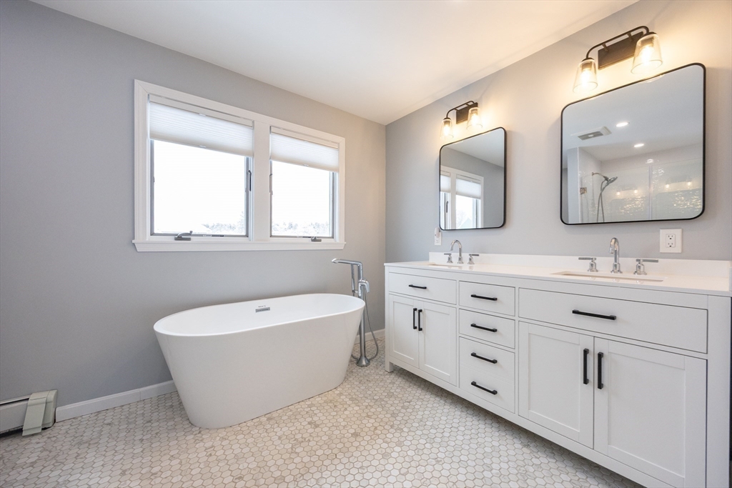 Graciously updated home on a lovely cul-de-sac on the Sherborn side of town; close to downtown, schools and the Upper Charles Rail Trail. Sunny kitchen features granite counters, hardwood flooring, SS appliances, bar/peninsula seating, new beverage fridge and a slider to the inviting deck. Spacious dining and living rooms offer flexible floor plan; fireplaced family room with brand new carpeting (2025). Updated half bath and laundry area complete the main level. Upstairs are four generously sized bedrooms, showcased by the primary bedroom with its new spa bathroom featuring a beautiful tiled shower, double vanity and lovely soaking tub. Updated hallway bathroom; two bedrooms with wood laminate flooring. Bonus lower level with beadboard, recessed lighting, built-ins and closets, ideal for a game room, office and exercise area. Newer roof (2021); patio and fencing (2024); exterior paint (2025); HW heater (2023). Fenced yard w/sport court. Truly a gem, in a great neighborhood!