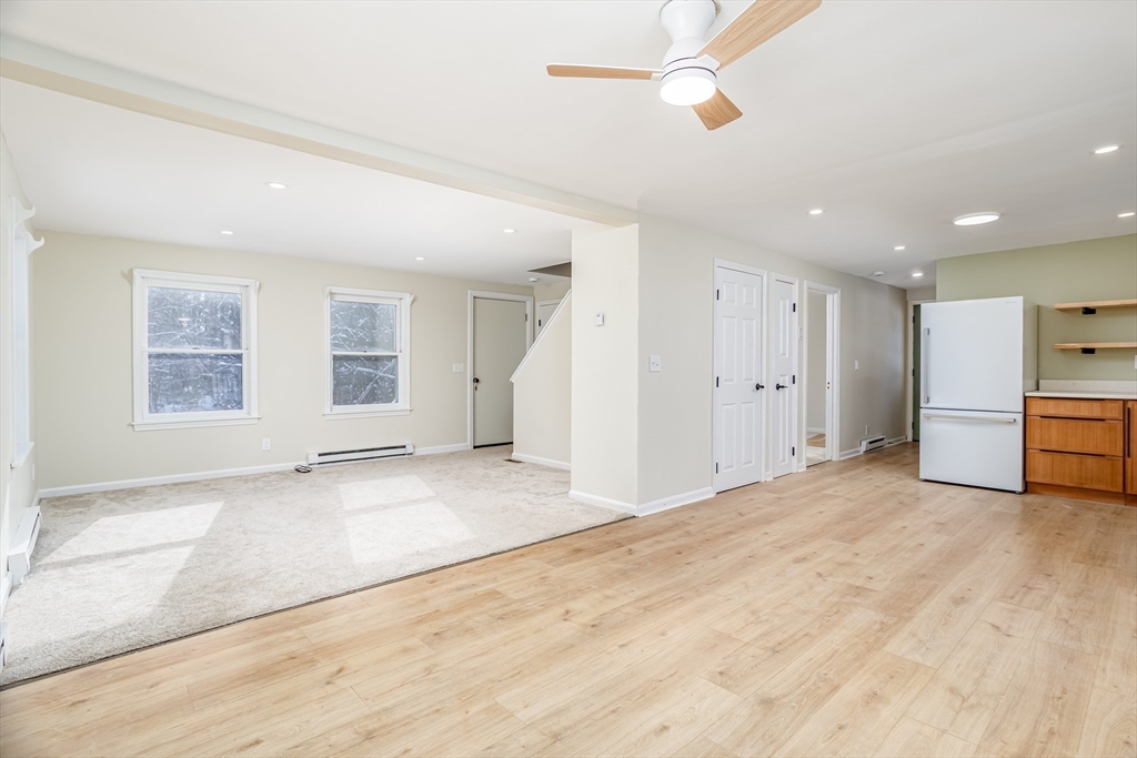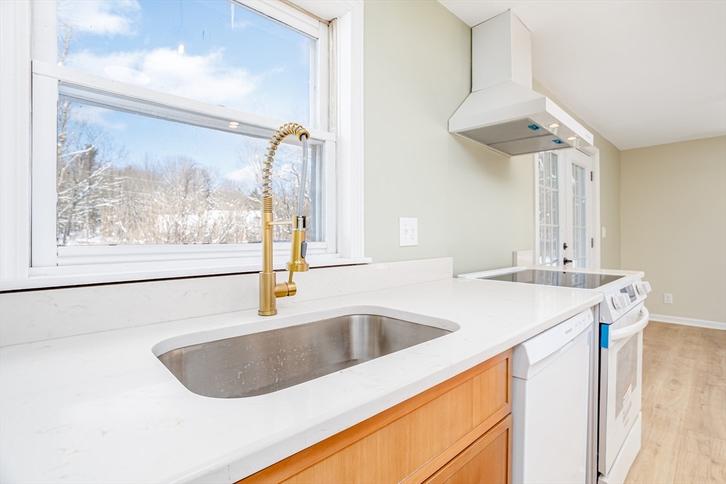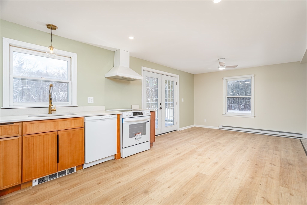 Wow! Awesome opportunity to break into the real estate market in the Wonderful town of Westminster. This home has been thoughtfully renovated. Beautiful kitchen with new white appliances, stylish Quartz countertops and sleek wood Scandinavian style cabinets. Additional open shelving for odds and ends. First floor bedroom close to a renovated full bath with attractive walk in shower., new vanity and lighting. Open Concept kitchen, living and dining. Let the sun shine in with new sliders leading out to a newly built deck overlooking the spacious yard. Lots of natural lighting. Flexible floorplan! N EW (2025) 3 BEDROOM SEPTIC, updated plumbing, new flooring, updated electrical, freshly painted interior and exterior, new recessed lighting and so much more! Lower basement level could be finished for additional living space. Location, location with affordable price tag!