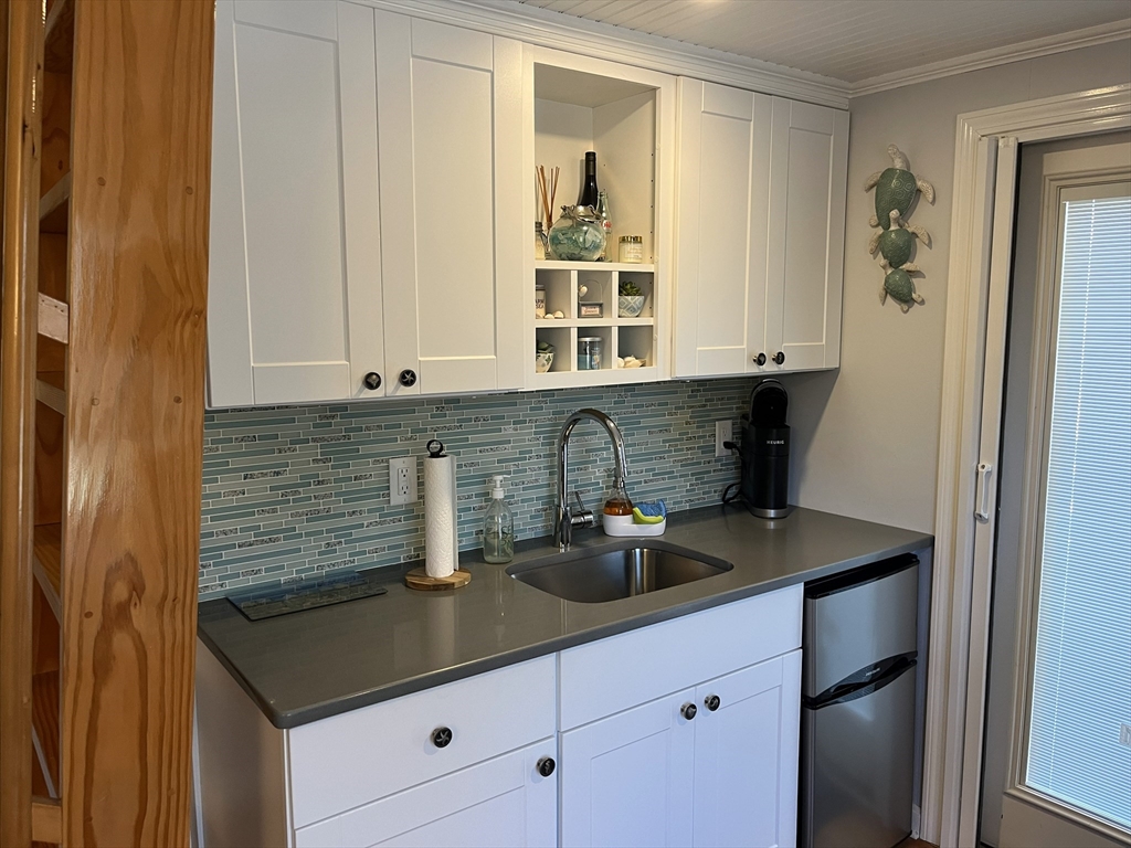 Year round condo in Stage Coach Village Condominiums on the north side of 6A. This unit is a well maintained corner unit. There is a sleeping loft as well as a living area, updated bathroom and kitchenette. Beautifully finished pine floors. Mini split to heat up the colder months and cool down the hotter months. French doors with a hide-a-way screen lead out to the wrap around deck that has enough room for a lounging area, cooking and a dining area! Close to Dennis northside beaches, Sesuit Harbor and Marina and Sesuit Cafe for great lobster and seafood! This unit comes fully furnished ready to relax and enjoy your time on Cape Cod.