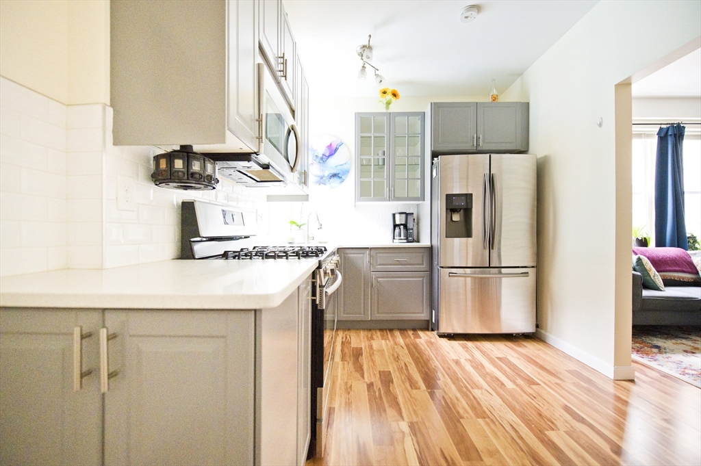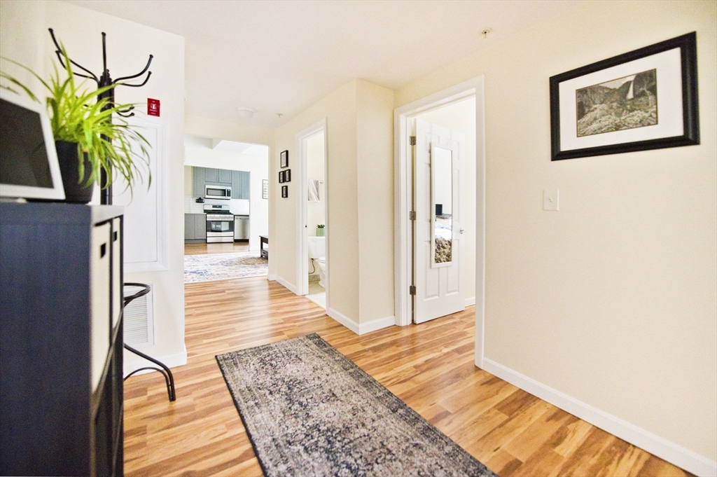 A beautiful, bright & airy 2nd floor 2 bed unit w/ a great open floor plan in a handsome professionally-managed solid building w/ high owner-occupancy. A 2017 full renovation included new wiring, plumbing, walls, ceilings, floors, systems, kitchen, bath, windows & more. New roof in 2024. Great kitchen w/ solid Quartz counters, stainless appliances, fridge w/ ice-maker, gas range, dishwasher & disposal. Exclusive private outdoor balcony. Convenient laundry downstairs. Includes private 66 sqft (7x9ft) DEEDED STORAGE room on site. Pet friendly w/ common fenced yard. HOT WATER, water, landscaping, snow removal, management & more INCLUDED in fee. Commuter rail only a 5 min walk then just 15 mins to South Station. Walking distance to StopNShop, CVS, Boston Public Library, Dunkin Donuts, middle & high schools. 1/2 mile from Franklin Park & Zoo. Two miles to I-93. Taxes would be substantially reduced w/ owner-occ residential exemption (see savings detail in disclosures section). Easy to show!