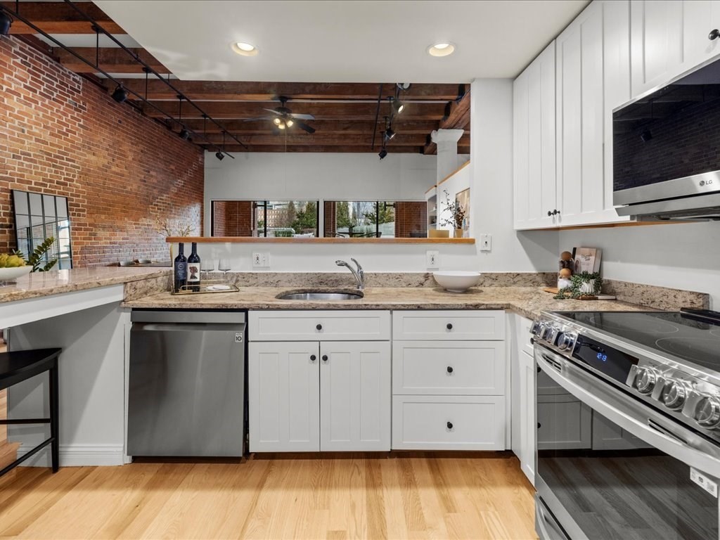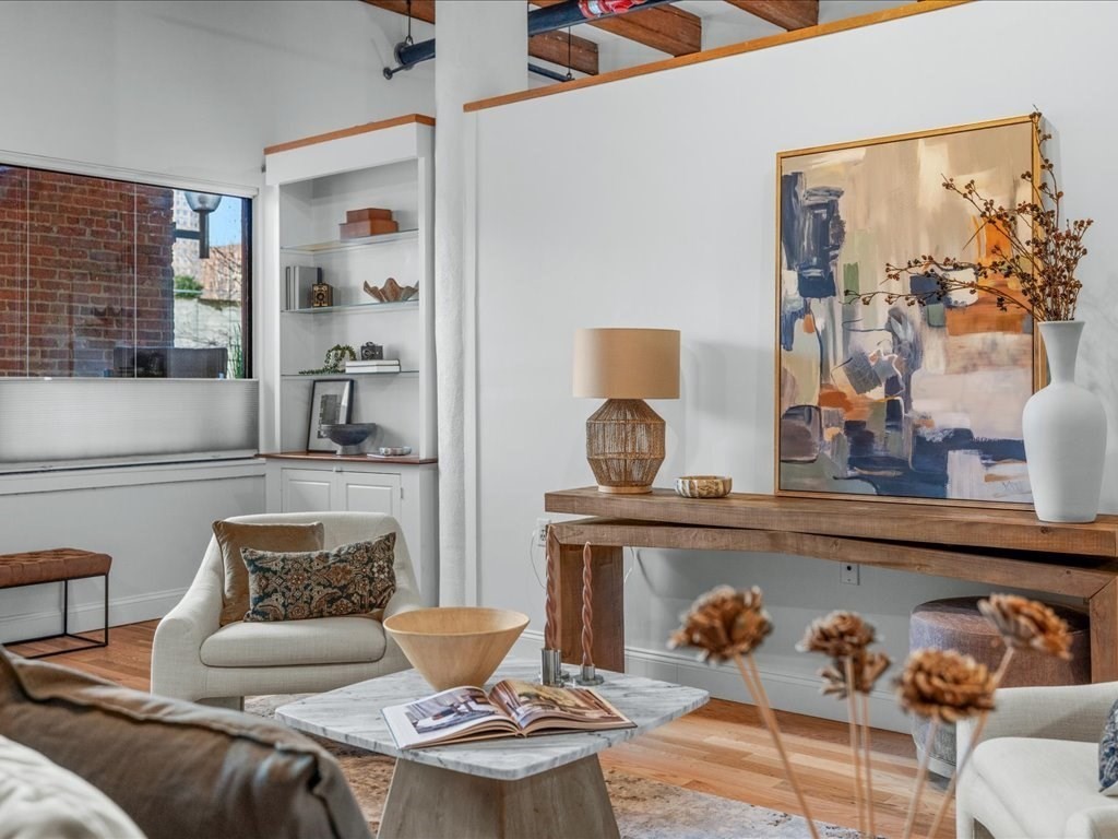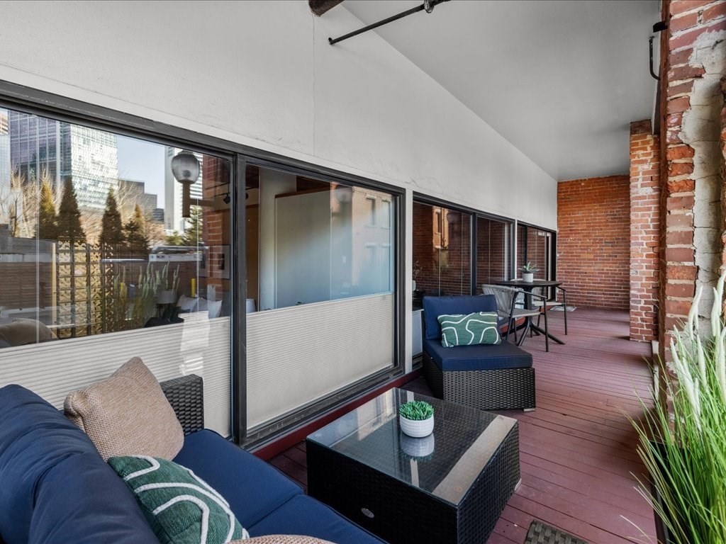 Designed for those who value space, character, and outdoor living, this oversized one-bedroom loft at Dockside Place offers a rare blend of Seaport energy and private retreat. Soaring 13-foot ceilings, exposed brick-and-beam details, and an expansive open layout create an inviting zen for everyday living and entertaining, while a private outdoor space provides quiet escape in the heart of the city. A 2025-renovation features granite countertops, stainless steel appliances, and a generous breakfast bar that naturally anchors the home. The serene bedroom suite opens to a spa-inspired bath with a glass-enclosed shower, double vanity, and discreet in-unit laundry. Hardwood floors, curated design, and a wall of windows fill the space with natural light and warmth throughout the day. Just steps from the Seaport’s acclaimed restaurants, waterfront, and cultural destinations, Dockside Place offers a pet-friendly elevated urban lifestyle with scale and outdoor space rarely found today.