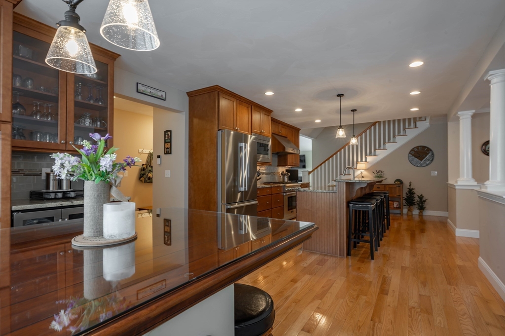 The current owners have meticulously maintained, fine tuned and added even more to this incredible home. The Gourmet kitchen was designed for people that like to cook and entertain. It features a 10 ft. two tier island that easily seats five, a six burner Thermador gas range with an electric oven and powerful direct vent hood. The first floor alone is as large as most ranches and contains everything that you need for one level living. The second floor has two additional bedrooms and a full bath to accommodate guests or family. AND, if that's not enough, the finished basement is an additional 1500 sq. ft. of living space that is AMAZING!! New features that were added this year: tile shower and custom glass doors in the Primary bath, hardwood in the Primary bedroom and sunroom, new tile in the mudroom, and new built-in bar area with gorgeous leathered granite. Don't miss the opportunity to live in this unique community of 30 low maintenance, energy efficient single family homes.