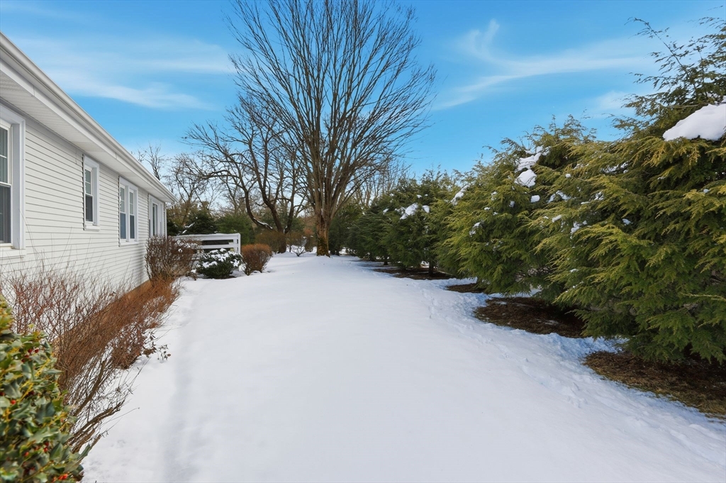 Don't miss this charming ranch in prime central Longmeadow- steps to town center & all three levels of highly rated schools. Enjoy comfortable one-floor living w/warm hardwoods throughout & versatile floorplan. Upgrades include replacement windows for added brightness & efficiency, vinyl siding for low-maintenance curb appeal, & brand-new roof (2024) for complete peace of mind. The bright living room features a cozy fireplace and large picture window overlooking a private, level backyard. The crisp black-and-white kitchen boasts beadboard wainscoting, ample counter space, and a generous eating area that flows to the family room with access to the backyard and two-car attached garage. The bedroom wing offers a serene primary suite with double closet and half bath, plus two additional bedrooms sharing a tiled full bath. The lower level holds huge expansion potential to nearly double your living space. Step outside to a wood deck and expansive level yard—perfect for relaxation or play.