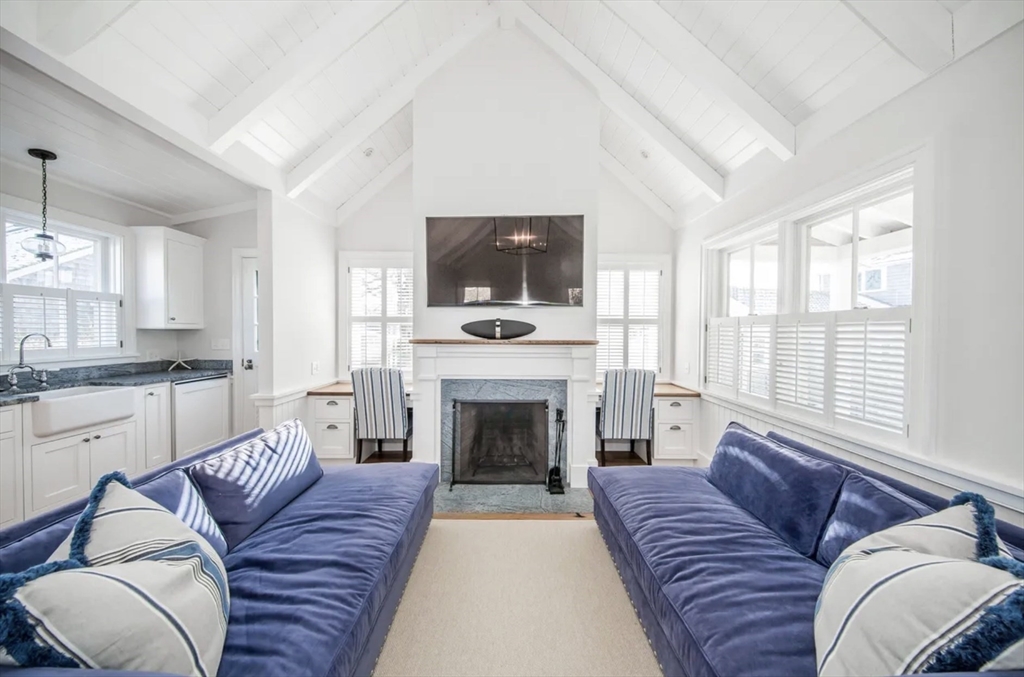 Nestled in the heart of historic Sconset, Les Fleurs is a charming Nantucket retreat surrounded by mature hedges and beautiful gardens. The main house features a bright living room with a wood-burning fireplace, open dining and kitchen areas, and a spacious primary suite with cathedral ceilings and access to the outdoors. Additional bedrooms offer comfortable accommodations for family and guests. A separate guest cottage provides added flexibility with its own living space, bedroom, full bath, in-unit laundry, and finished lower level. Outdoor living is enhanced by inviting porches, patios, and landscaped grounds, creating a peaceful island setting just moments from Sconset Village, beaches, shops, and dining.