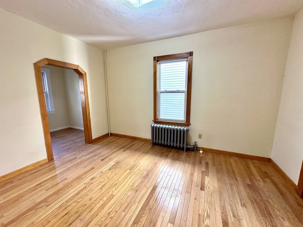 *MARCH or APRIL 1 LEASE START* 3rd(top) floor 2 bed 1 bath in a NON-owner occupied 3 family house in conveniently located East Watertown neighborhood. PRIVATE DRIVEWAY FOR 2 CARS. Apartment will be freshly painted by move in. PET FRIENDLY. Unit has hardwood floors, replacement windows, spacious eat-in kitchen w/ tile floor, good cabinet and counter space, dishwasher, gas stove & fridge. 1 bedroom is about 12x8 & the 2nd is 11x10. Main bedroom has a nice bonus room off it which is ideal for a walk-in closet or home office. PRIVATE LAUNDRY MACHINES ON SAME FLOOR. Back covered porch and yard space for use. Water and sewer are included. UTILITIES ARE NOT INCLUDED IN RENT (gas heating, electricity, cable, internet). Fabulous park right behind the house. Great location close to shops, restaurants, MBTA service & Arsenal Yard. Photos are of similar unit in the same building and for representational purposes only. First month and security deposit due upfront.