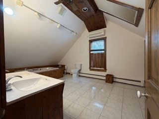 Spacious and well-maintained two-level, three-bedroom, two-bath rental offering flexible living space and great natural light throughout. The main level features a large living room with durable flooring, a dining area, and a bright kitchen with ample cabinet and counter space. One generously sized bedroom and a full bath complete the first floor. In-unit laundry provides added convenience. The second level offers two bedrooms and one bath, including a primary suite with vaulted ceilings, excellent storage, and a large bathroom featuring a jacuzzi soaking tub and separate vanity area, perfect for unwinding at the end of the day. Enjoy a farmer’s porch for outdoor space. Neutral finishes throughout make this home easy to furnish and truly move-in ready. Convenient layout with room for work-from-home or guest space. Heat is included in the rent. Available for occupancy 2/1.