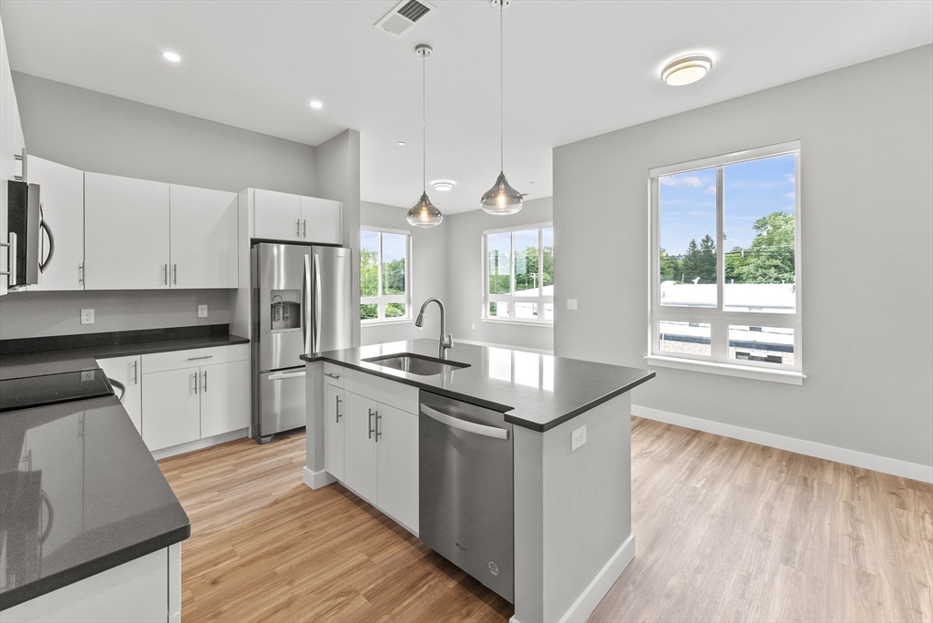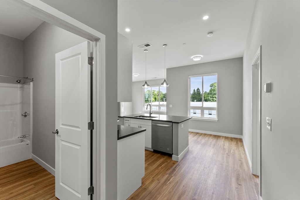 Welcome to Hanson Crossing. Built over the last 2 years this community offers two buildings with 49 apartments and 5 stores. The site offers luxury living with a video entrance system into a beautiful lobby, elevator access, high end flooring, cabinet, counter and appliance finishes. All units are designed with high efficiency. This unit is a second-floor corner unit with 2 bedrooms, 2 full baths and in unit laundry.