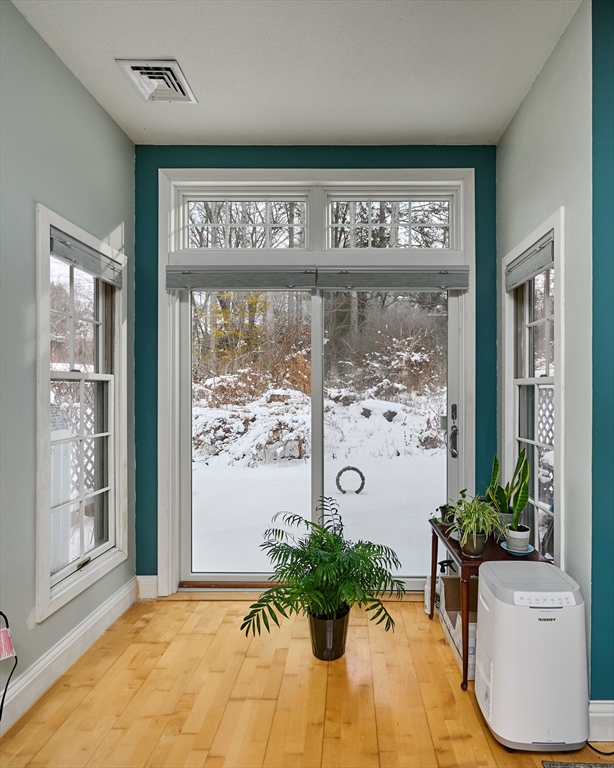 Sited in a quiet area at the back of Amity Place, discover a substantially upgraded 1327sf, 3 BR, 2.5 BA townhouse w/ one car detd garage + storage. Walk 350’ to Sunset Farm, 0.7 miles to Amherst Ctr, and 1/3 of a mile for car-free access to UMASS, or the Norwottuck Rail Trail. Shopping, dining, & activities are nearby. Enjoy spacious living on 3 levels w/ maple floors. The main level has a west facing DR w/ remodeled Cook's Kitchen (painted cabinetry, quartz counters & vinyl plank floors). The east facing LR features fireplace, ½ bath, newer box window alcove w/ slider to encl. patio overlooking hillside gardens. The 2nd floor comprises primary BR with alcove, 2 custom closets & full bath access along w/ BR & laundry closet w/ Samsung W/D. A large skylit 3rd floor offers versatile space for BR/Study w/ ensuite bath & attic access. Perks: built-in Levelor shades, internet optimized for remote workers, Nest thermostats & electrical upgrades, extensive interior painting. See attd. list.