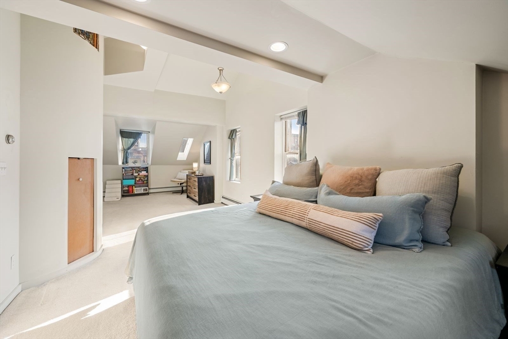 Character and charm define this 2 story corner brownstone in the heart of Boston’s historic South End. Filled with natural light, the home features a private roof deck and a distinctive cupola with sweeping city views—perfect for sunset watching. Original architectural details and decorative fireplaces showcase classic Boston craftsmanship throughout. A spacious eat-in kitchen has a direct walkout to the roof deck. The generous living room is complemented by an adjoining den with pocket doors, ideal for a home office or guest room. A full bath with in-unit washer/dryer completes the main level. Upstairs offers an oversized primary bedroom with en suite half bath, ample closet space, and room for a sitting or office area. The upper level also includes a second bedroom. Oversized storage closet is located within the private entry. Conveniently located near parks, Silver Line and MBTA service, acclaimed restaurants, boutiques, and Whole Foods. OPTION: garage parking for rent 1 block away.
